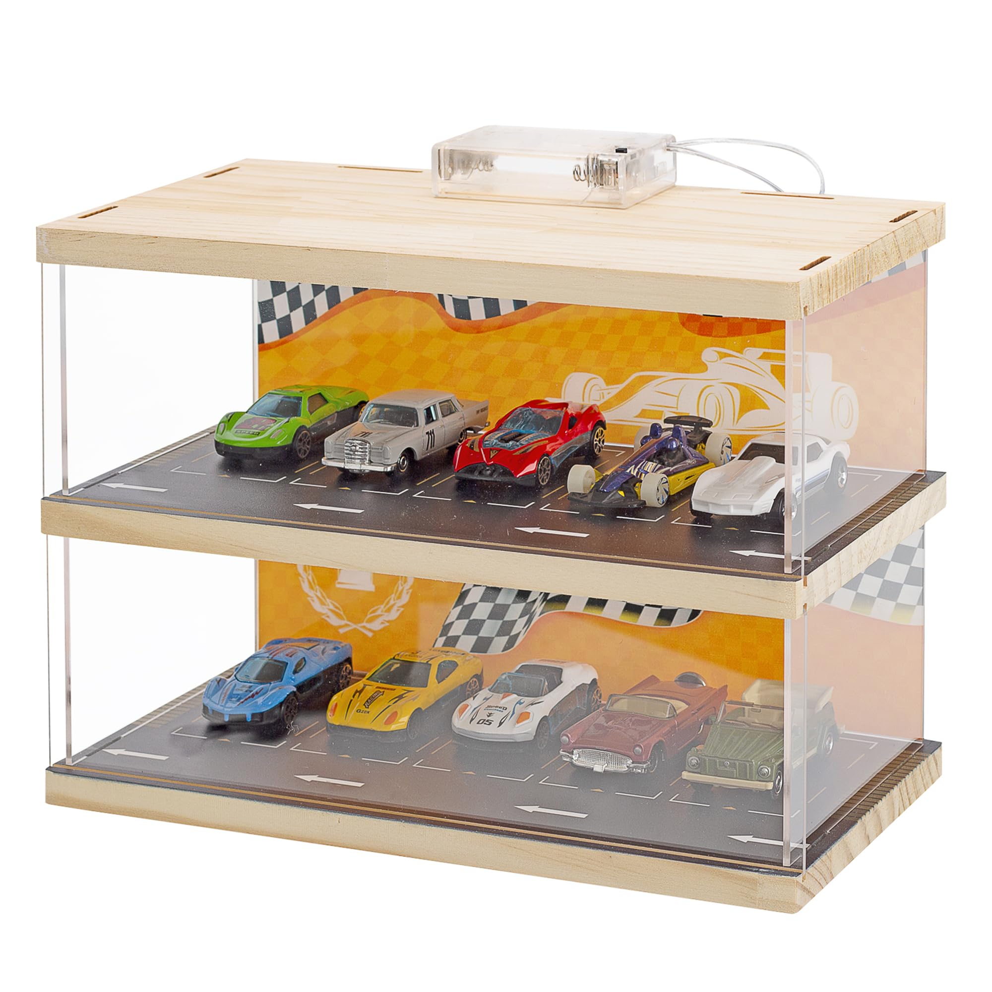 High-Quality Construction: Bring a touch of vintage elegance to your 1/64 scale Hot Wheels and Matchbox car collection with our Vintage Pine & Acrylic 2-Tier Display Case. This beautiful showcase features a sturdy pine frame, clear acrylic window, and blue lighting to highlight your cars. Illuminate Your Hot Wheels Cars: With built-in blue light strip and a crystal-clear acrylic construction, your cars will look better than ever. The clear acrylic door not only protects your cars from dust and damage, but also get ready to transform your collection into a stunning display. Easy to Assemble: Measuring 10.23 x 7.68 x 5.51 in, with each space measuring 10.23 x 3.15 x 5.51 in, this display case is easy to assemble and comes with all the hardware need. The display case is connected by inlay, ensuring a smooth and effortless installation process. Detailed instructions are included to guide you through the assembly process. Versatile Use: Showcase your collection of Hot Wheels and Matchbox cars in the 1:64 scale with this stylish and durable display case. It is the perfect item for collectors who want to display their beloved collection in pristine condition. Perfect Gift for Car Enthusiasts: This display case is the ideal gift for car enthusiasts who appreciate a beautiful display. The blue illuminated light adds a unique touch to your Hot Wheels cars, making them sparkle and shine like never before.