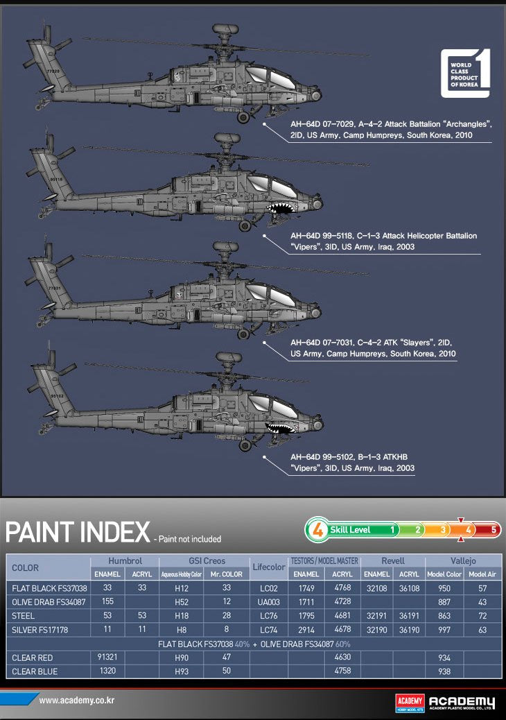1/72 AH-64D BLOCK II Early Version #12514 ACADEMY HOBBY KITS by Academy Models