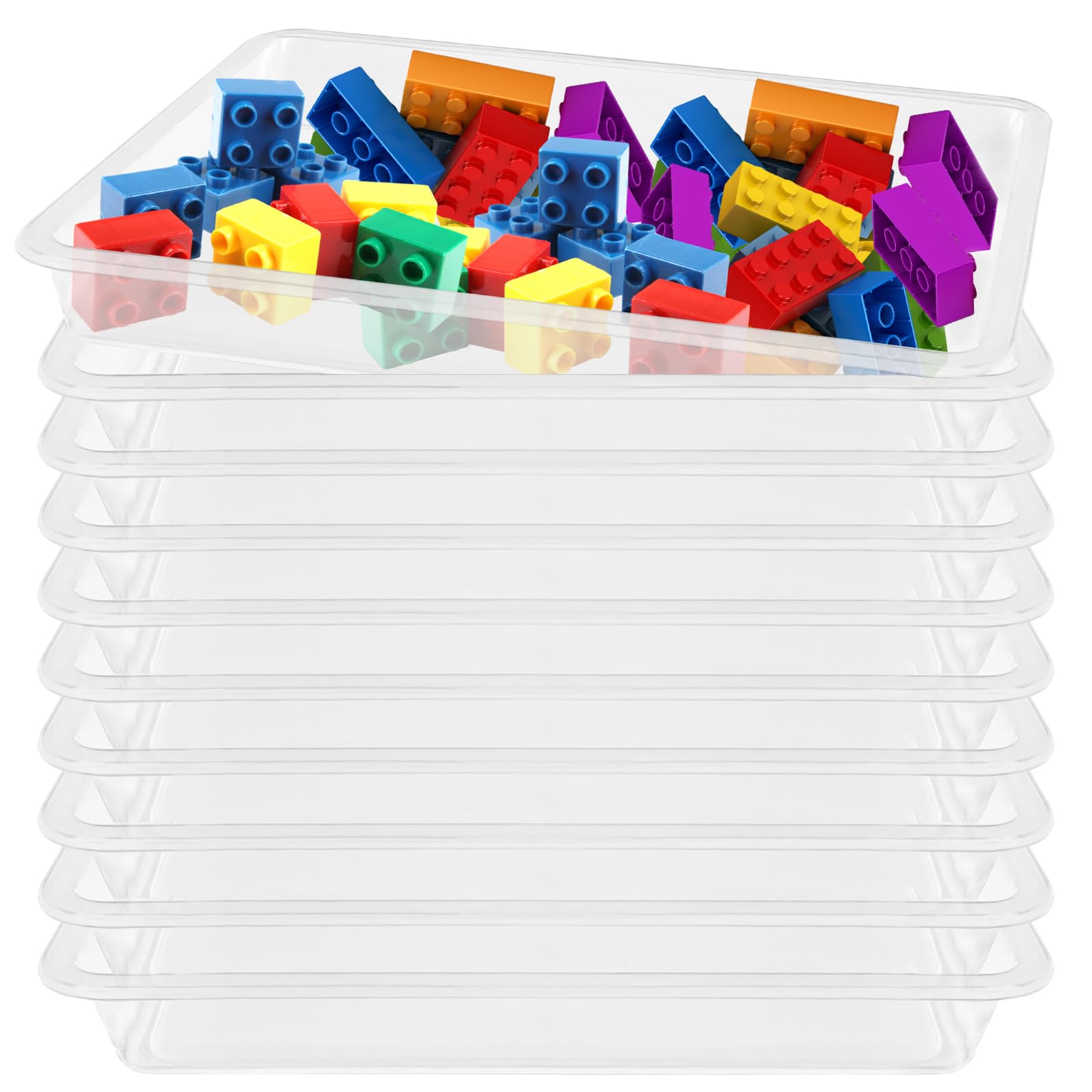 10 Pcs Plastic Art Trays,Reusable Plastic Trays for Serving Food and Parties,Stackable Activity Tray for DIY Projects,Painting,Beads11 x 8.3 x 1.2 Inch (Clear)