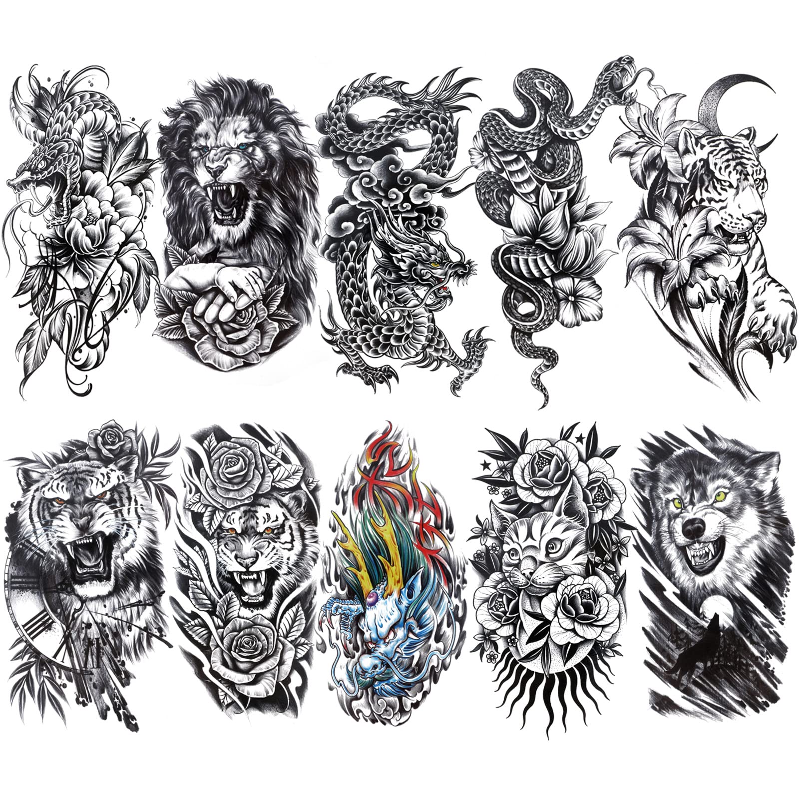 Lion, tiger, wolf, snake, dragon, flower, hand, men show hormones of the tribal tattoo stickers