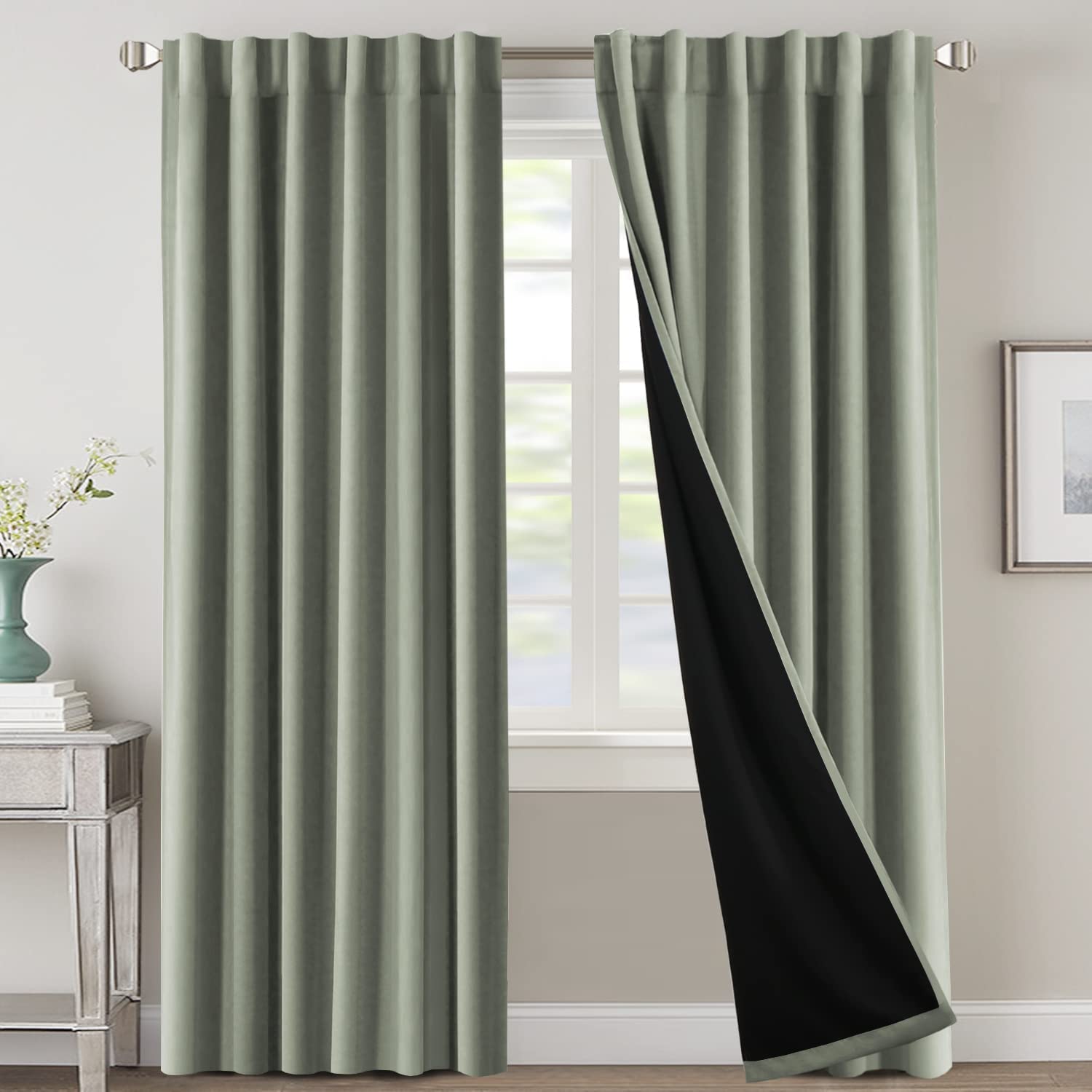 100% Blackout Curtains 2 Panels Full Light Blocking Thermal Insulated Curtains Drapes for Bedroom Living Room Back Tab/Rod Pocket Style with Black Liner (Sage,2x52"Wx84"L)