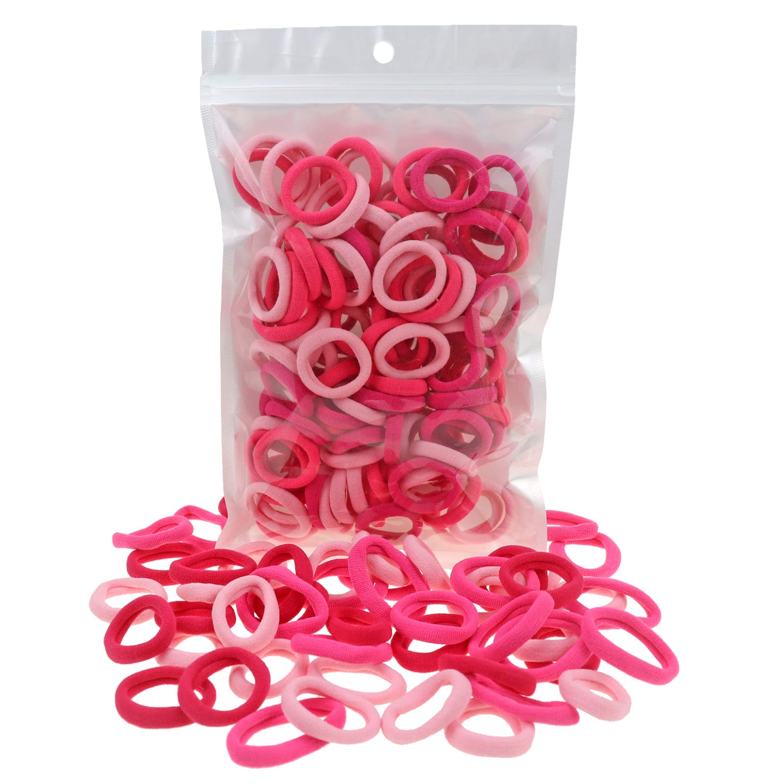 soft seamless hair ties for baby girls, toddlers, gentle on hair while no crease, no tangle, no break. Color: pink Package: 100 counts