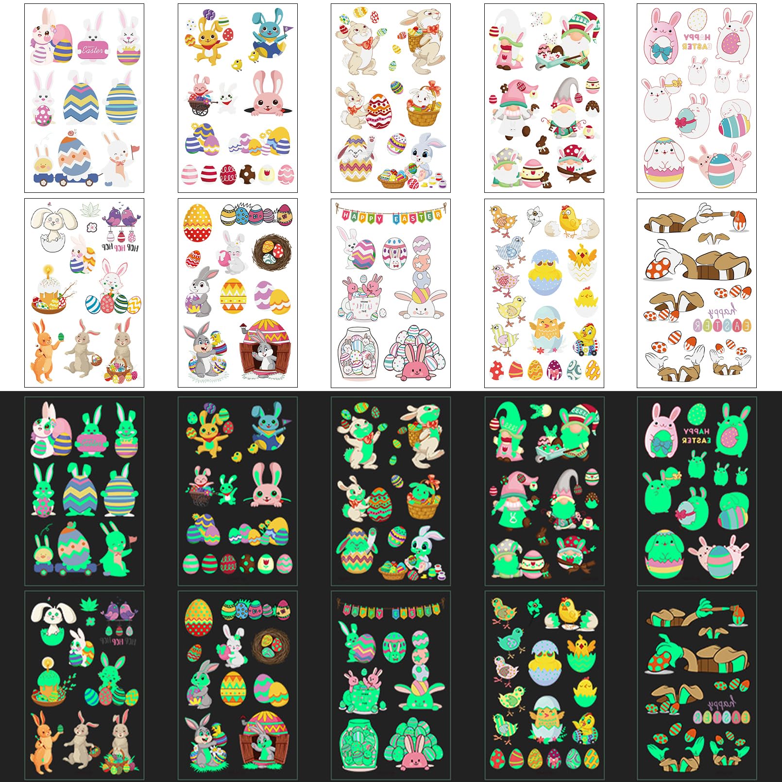 80Pcs Easter luminous temporary tattoos for kids,Glow in The Dark Easter Basket party Tattoos stickers, dwarf colored egg carrot rabbit egg facial makeup Tattoos, holiday party Supplies Favors Gifts