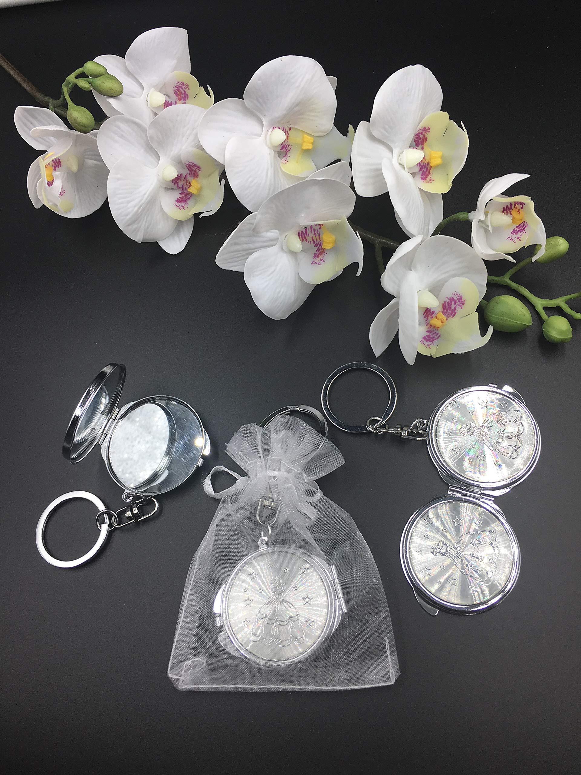 (12) New Quinceañera Recuerdos. My Sweet 15 Princess Celebration Gifts Silver Plate Mirror Keychain Party Favor Set With Organza Bags