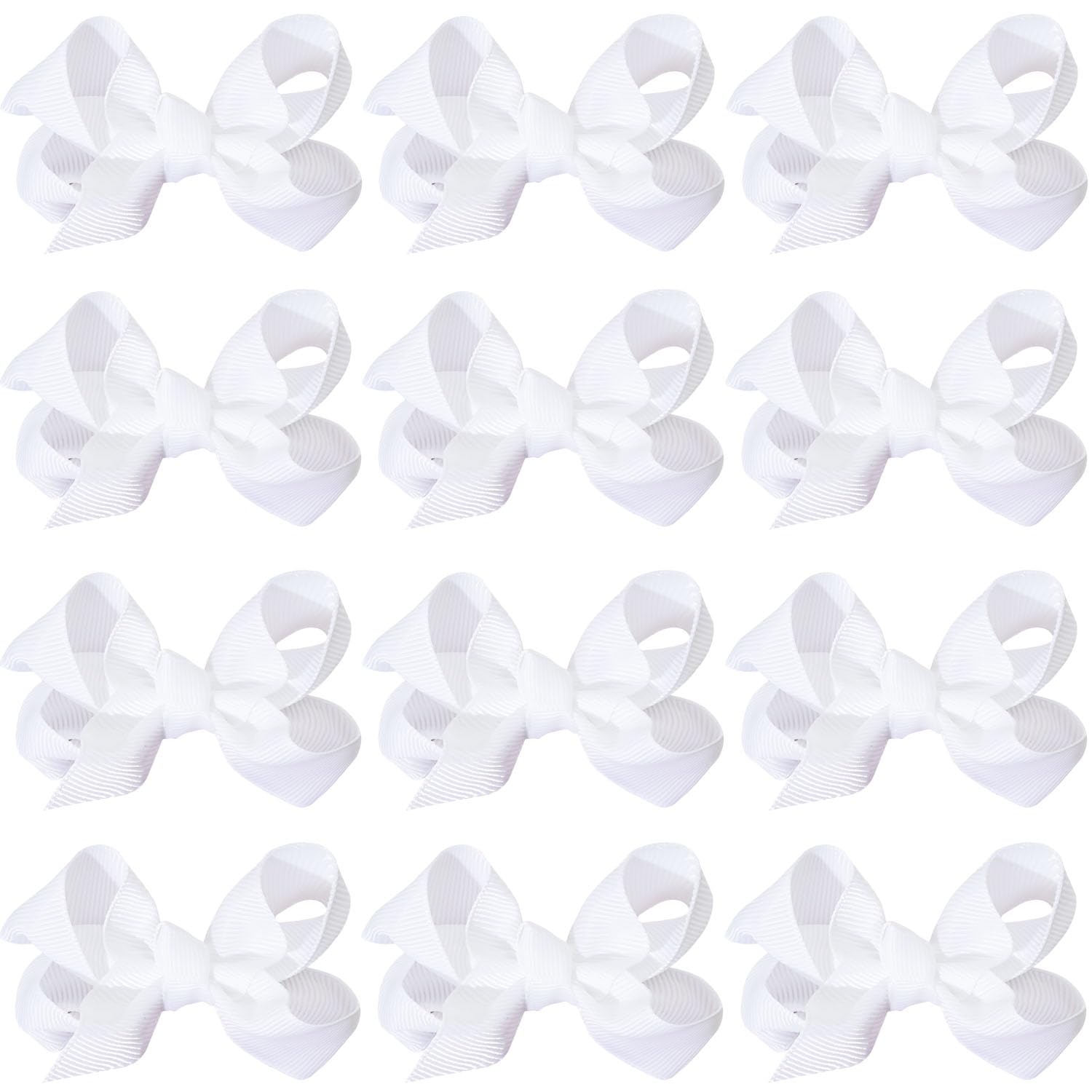 12 PCS 3" Hair Bow Clips Grosgrain Ribbon Solid Color Hair Bow With Alligator Clips Hair Accessories for Teen Toddler Little Girls