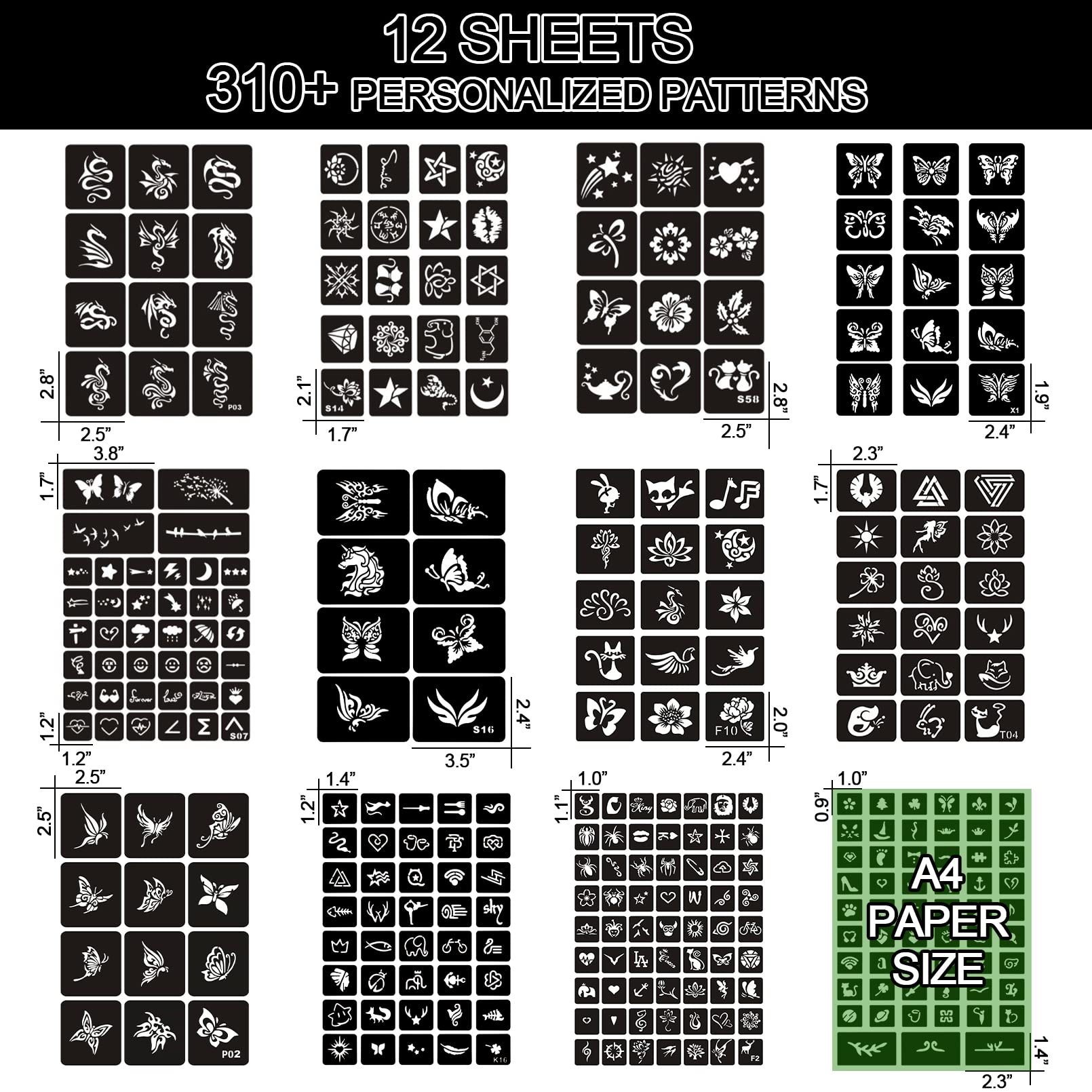 Multiple Pattern Designs - This set of temporary tattoo templates includes over 211 different patterns. A variety of creative combinations to meet your every need.