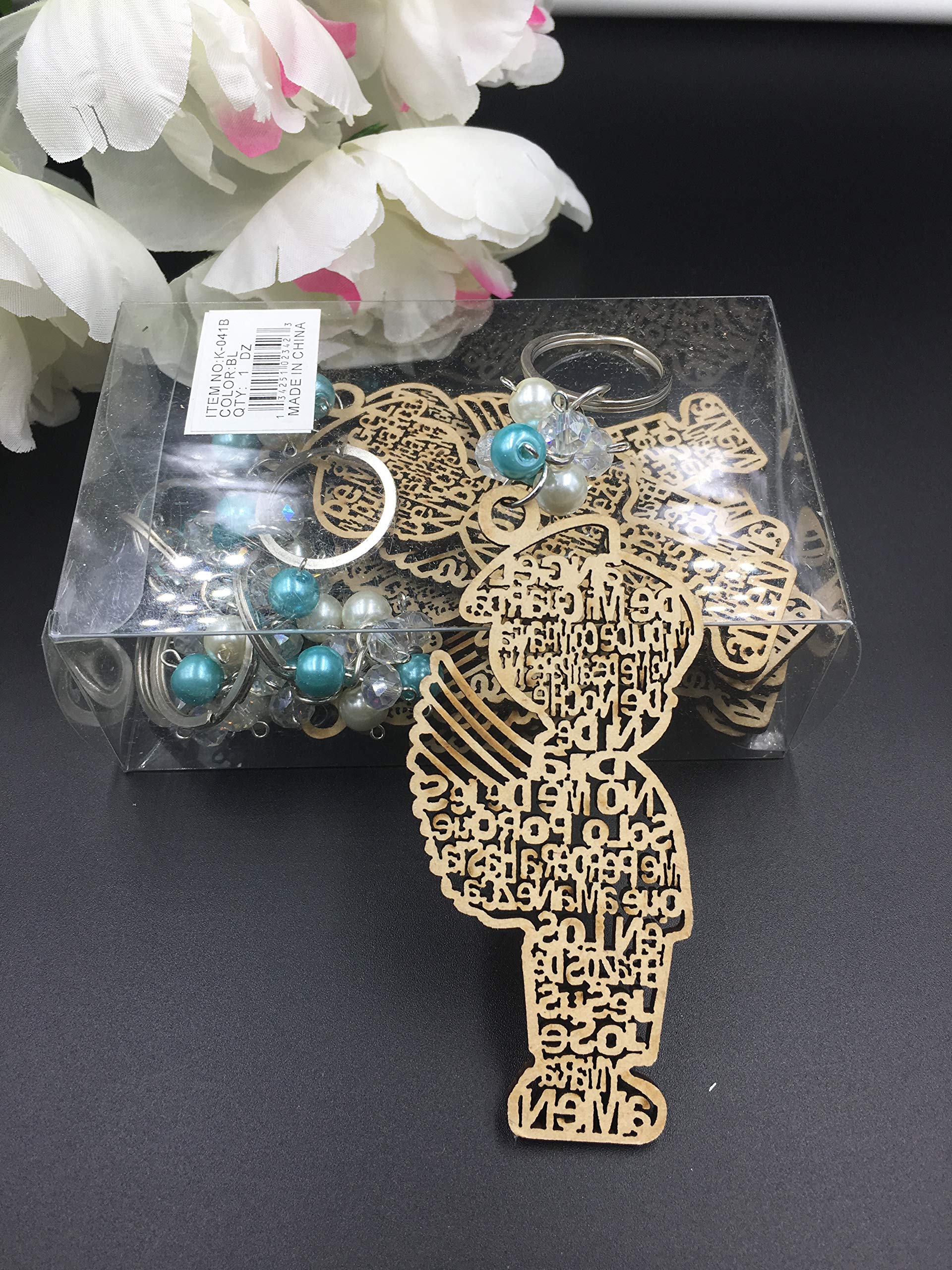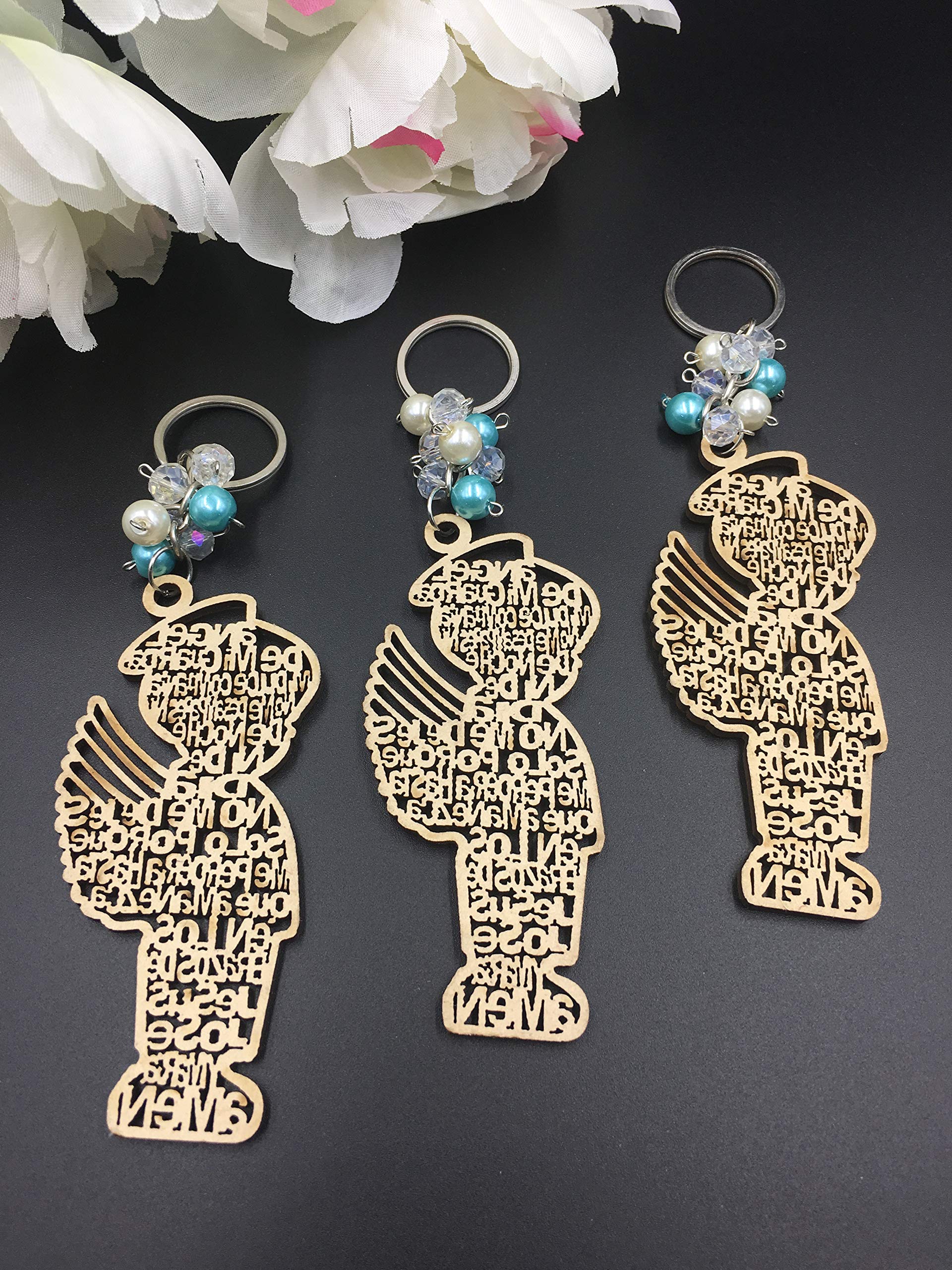 Beautiful Baptism wood design with Angel Charm. Great for baptism favors, christening favors.