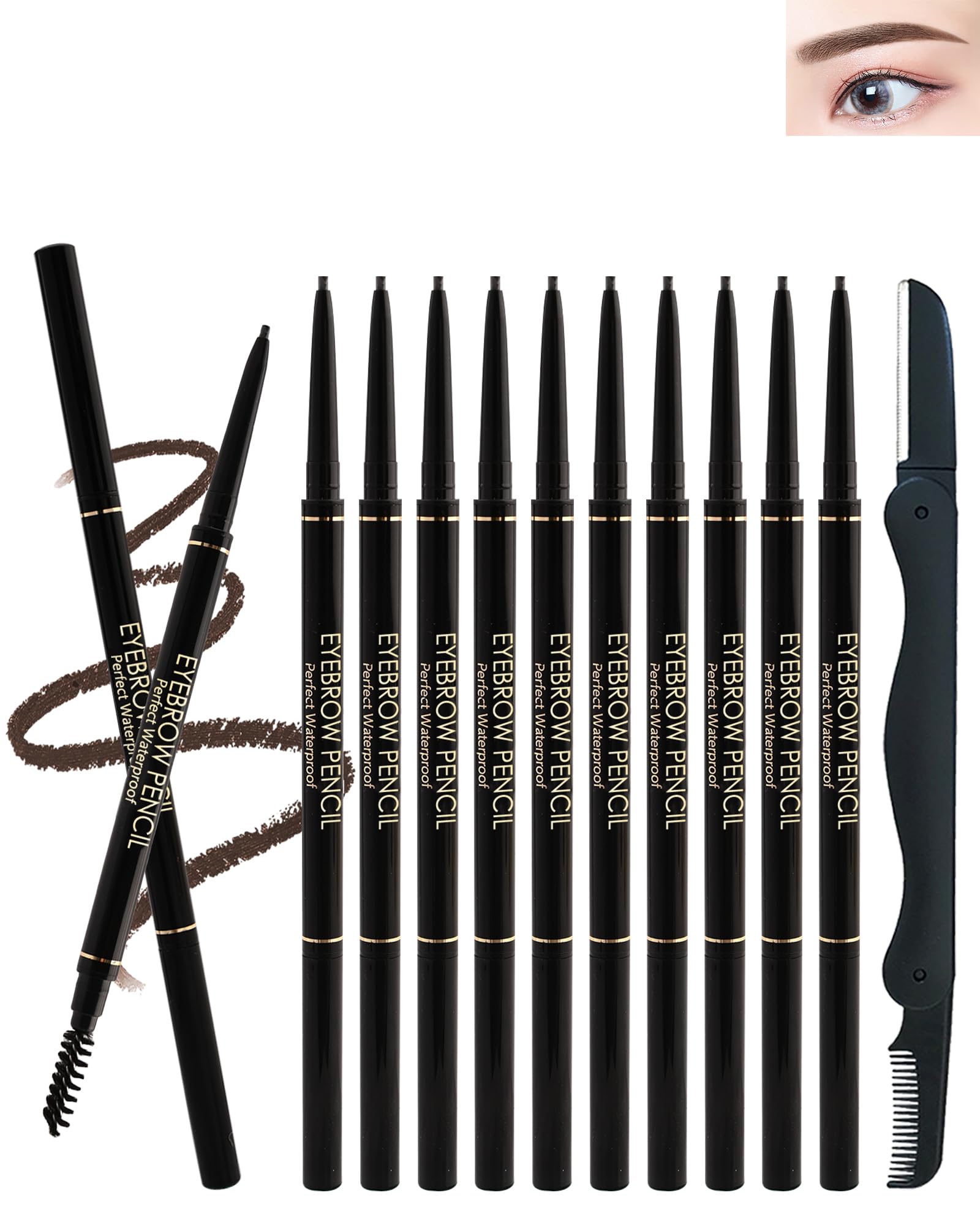 12Pcs Waterproof Black Light Brown Brown Gray Dark BrownEyebrow Pencil Set, Professional Brow Micro Eyebrow Retractable Pencil , Ultra Fine Long Lasting for Perfect Eye Liner Brows Women Eye Makeup Shaping & Filling Brow Gel Pen Christmas Set Gift