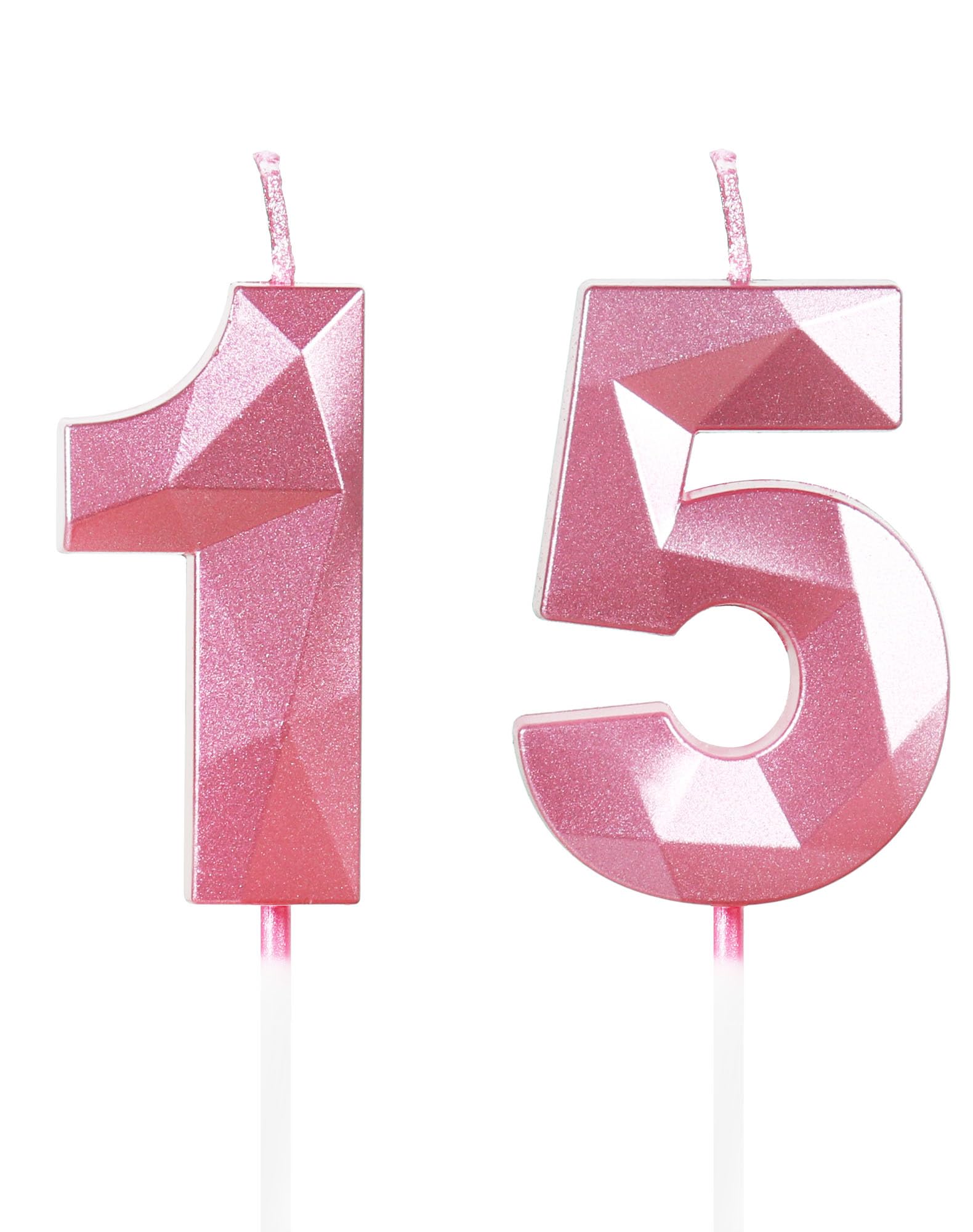 Yiran Pink 15th Birthday candles cake numeral candles happy birthday cake topper decoration for boys girls men wowen birthday party wedding anniversary celebration supplies Features: 3D Delicate appearance: The happy birthday cake candles are meaningful for you to celebrate your birthday and nice cake topper decoration for embellishing your cake and cupcake, bright glow for creating romantic atmosphere and adding a touch of elegant. Adapt to the venue: Ideal cake decoration for many occasions, such as birthdays, baby showers, anniversaries, retirement parties, family reunions, weddings, Hawaiian parties, even Christmas, must-have items for party cake, bring you memorable and meaningful party. Specifications: Quantity: 2 pieces Material: wax, plastic Candle length: approx. 5 cm/ 1.97 inch Total length: approx. 11.5 cm/ 4.5 inch Color: as pictures shown Package includes: 1 x Pink Number 1 Numeral cake candles 1 x Pink Number 5 Numeral cake candles Warm notices: Please allow little error on the size due to manual. Do not leave the lighted candles unattended. Please place candles out of reach of children. And please do not light candles on or near flammable materials. Please keep the candle away from the fire when not in use, when burning, adult's supervision is needed.