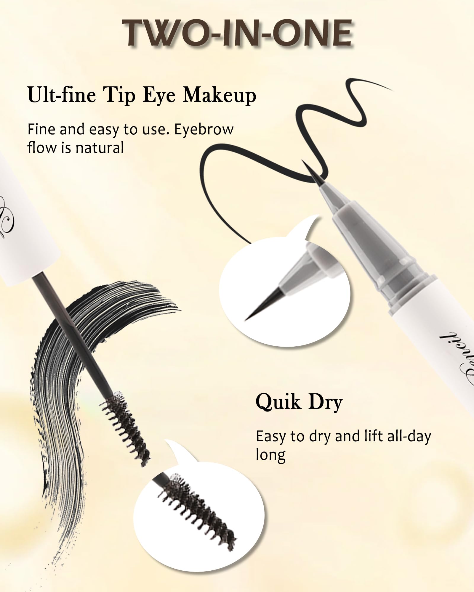 Black 2-In-1 Waterproof Eyebrow Pencil and Tinted Brow Gel, Long Lasting Natural Eyebrow Gel Tinted Smudge-Proof, Thickening, Precision Tip Liquid Eye Brow Pen, Lifting Snatching, Eye Makeup for Women