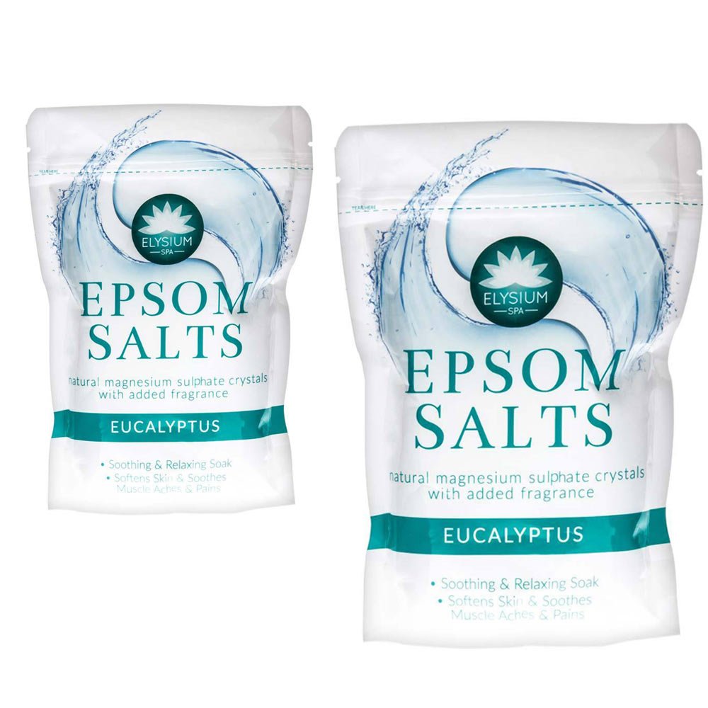 2 PACK Elysium Spa Epsom Bath Salts Natural Magnesium Sulphate Crystals - EUCALYPTUS 2 x 450g