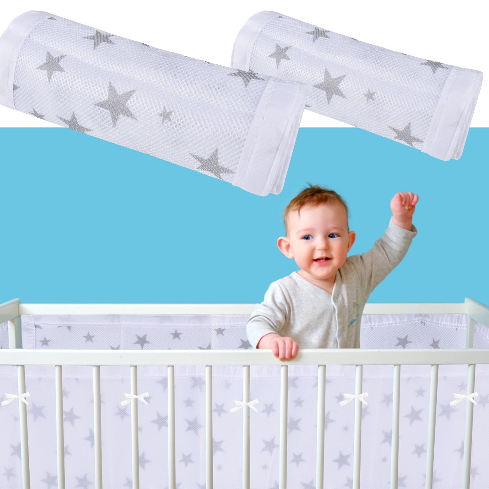 2 Pcs Baby Cot Bumpers for Cot Bed,Baby Crib Bumper,Cot Bumper with Breathable Mesh,Crib Bed Liner Bumper Set,4 Side Impact Protection for Infants(Stars)