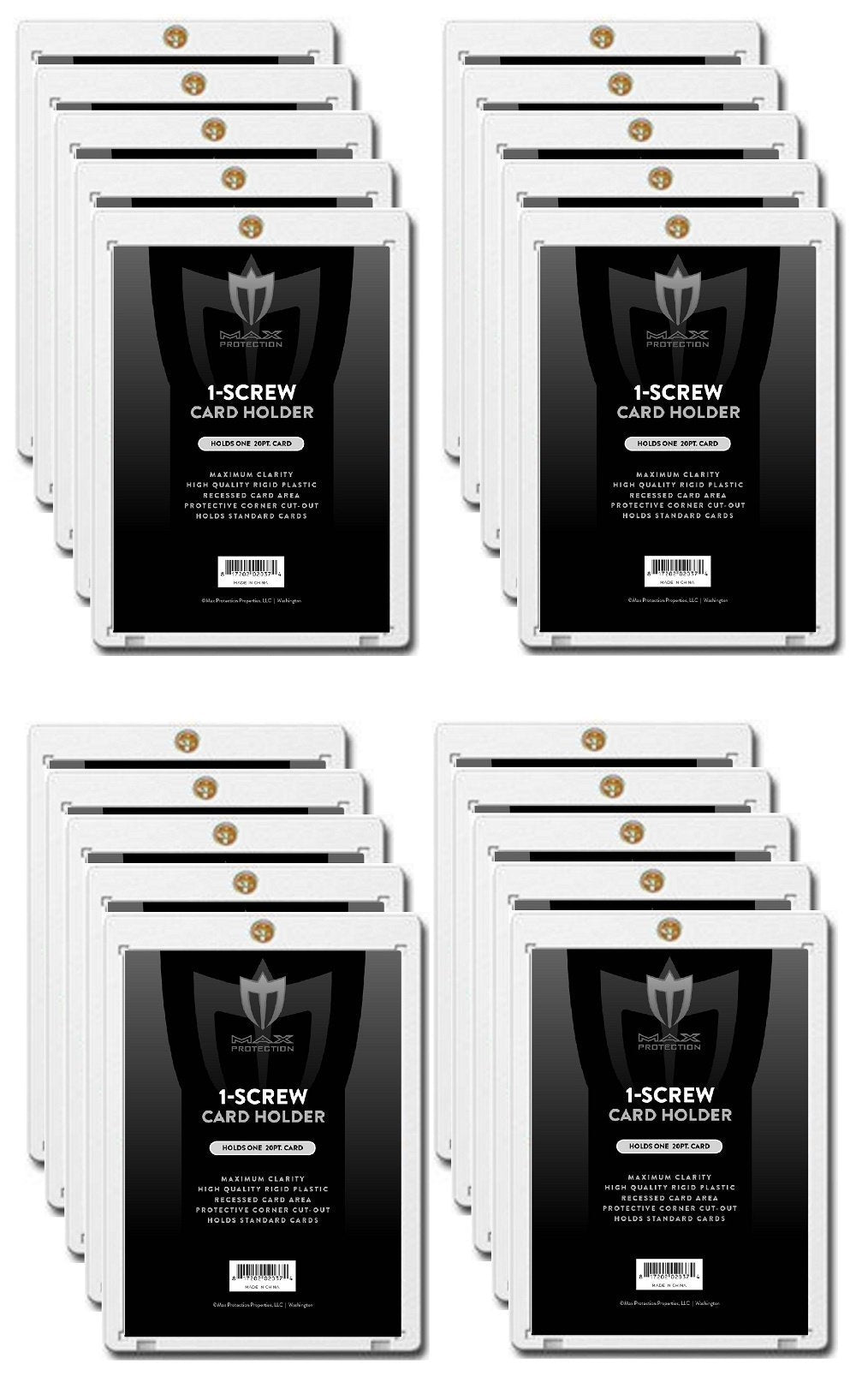 (20) Max Pro 1 Screw Card Holder - 20 Pt. Standard Card Screwdown - Baseball, Football, Basketball, Hockey, Golf, Single Sports Cards Sportcards Card Collecting Supplies