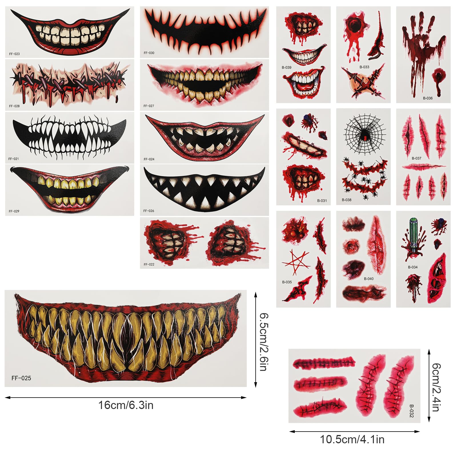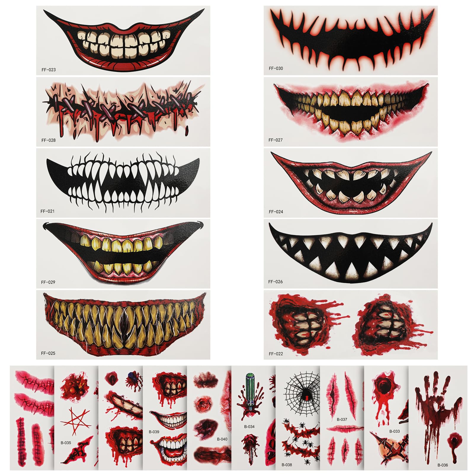 20 Sheets Halloween Tattoo Stickers, Realistic Waterproof Scary Big Mouth Face Sticker Halloween Tattoos Make up Stickers Face Tattoo for Halloween Cosplay Decor