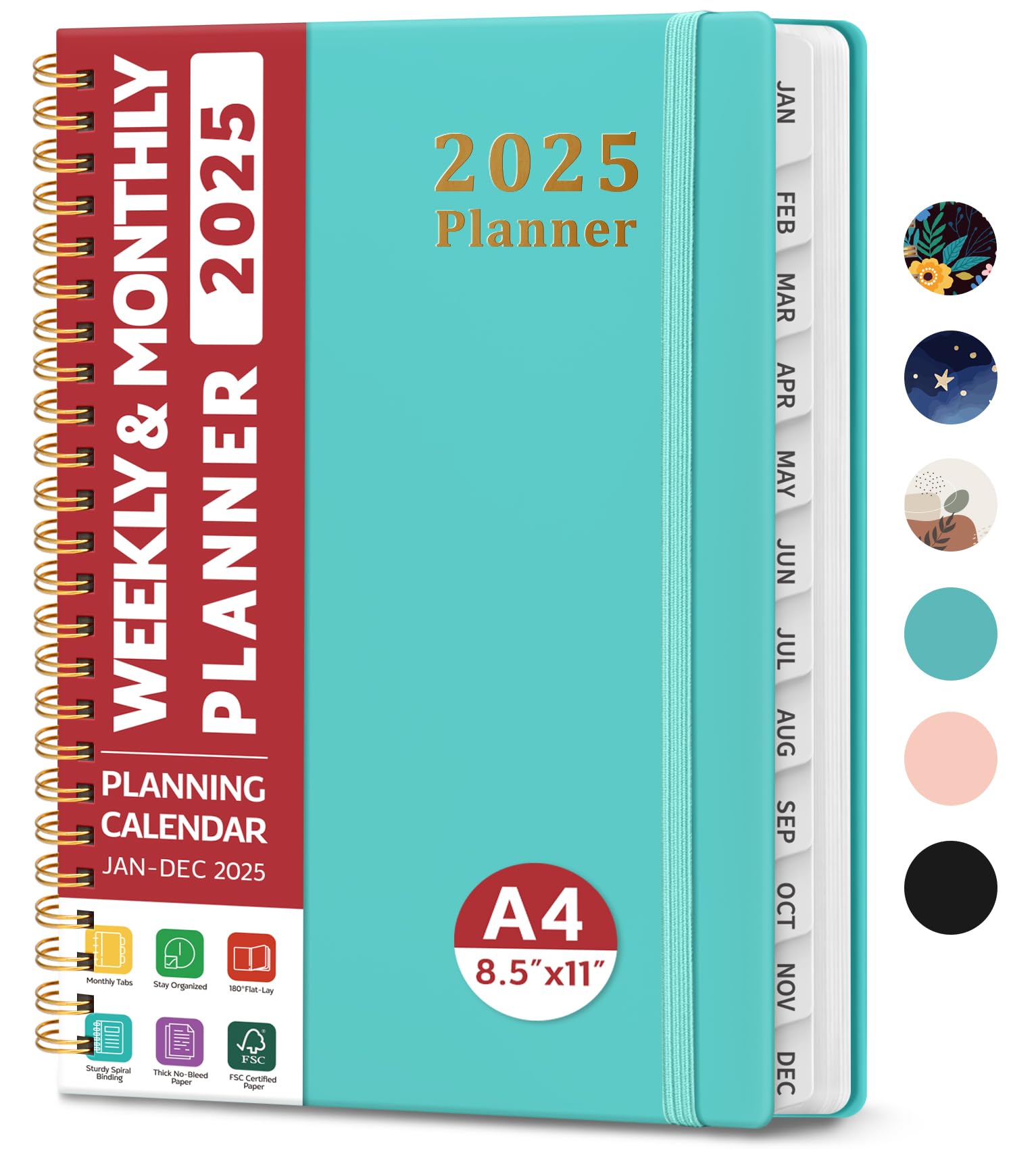 Step into 2025 with Confidence, Style, and a Well-Structured Plan for Success! Our meticulously designed 8.5" x 11" 2025 planner weekly and monthly is your key to a successful year ahead. With monthly mastery, you'll find daily blocks, monthly tabs, and helpful Holiday Reminders, ensuring you never miss an important date or appointment. But the benefits don't stop there. Weekly triumphs unfold with checkboxes and ample writing space, allowing you to track your progress and stay on top of your goals. Our 2025 planner isn't just functional; it's also a statement of style and quality. Thick, high-quality paper enhances your writing experience, while the hardcover cover and strong twin-wire binding ensure durability throughout the year. But that's not all - our planner is designed to enrich your journey further. It also includes a Contacts section, a yearly overview, reference calendars, and a comprehensive list of 2025 holidays. Whether you're a seasoned professional looking to stay organized or someone seeking boundless possibilities and structure in the year ahead, order our planner now and take the first step toward a successful and well-organized 2025. Your journey starts here, with our planner as your trusted companion.