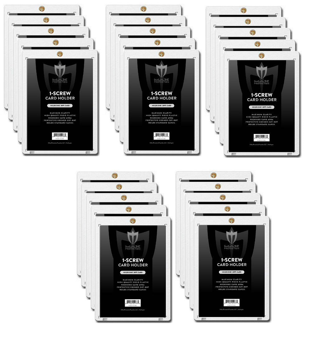 (25) Max Pro 1 Screw Card Holder - 20 Pt. Standard Card Screwdown - Baseball, Football, Basketball, Hockey, Golf, Single Sports Cards Sportcards Card Collecting Supplies