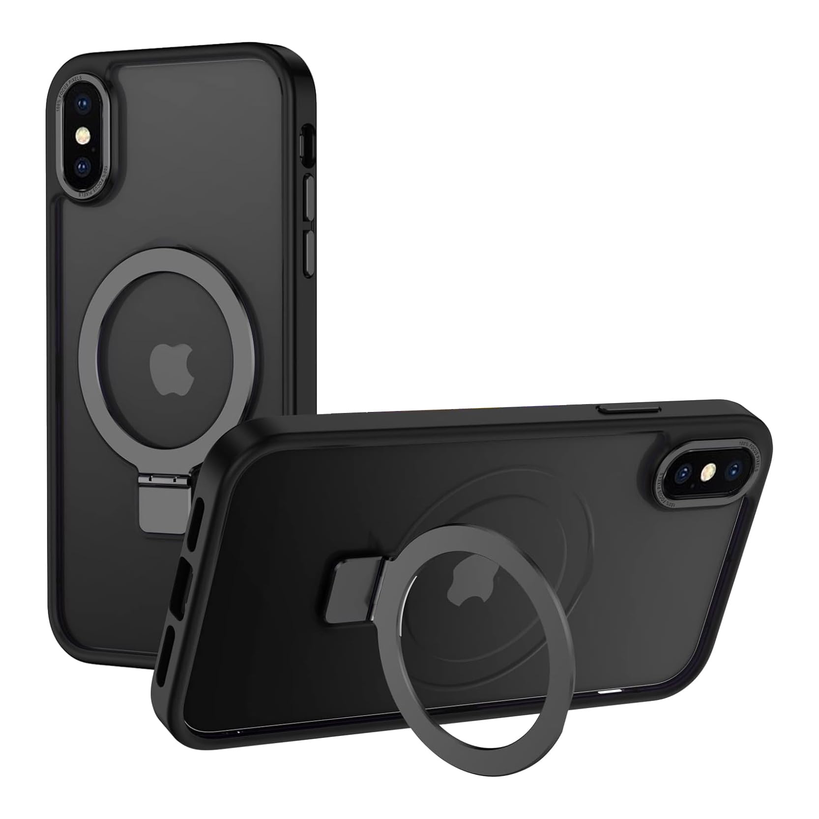 2NSPDRGNI Magnetic Case Compatible with iPhone X/XS,Translucent Matte Back Non-slip Phone Cover Protective Shockproof with Stand,Black