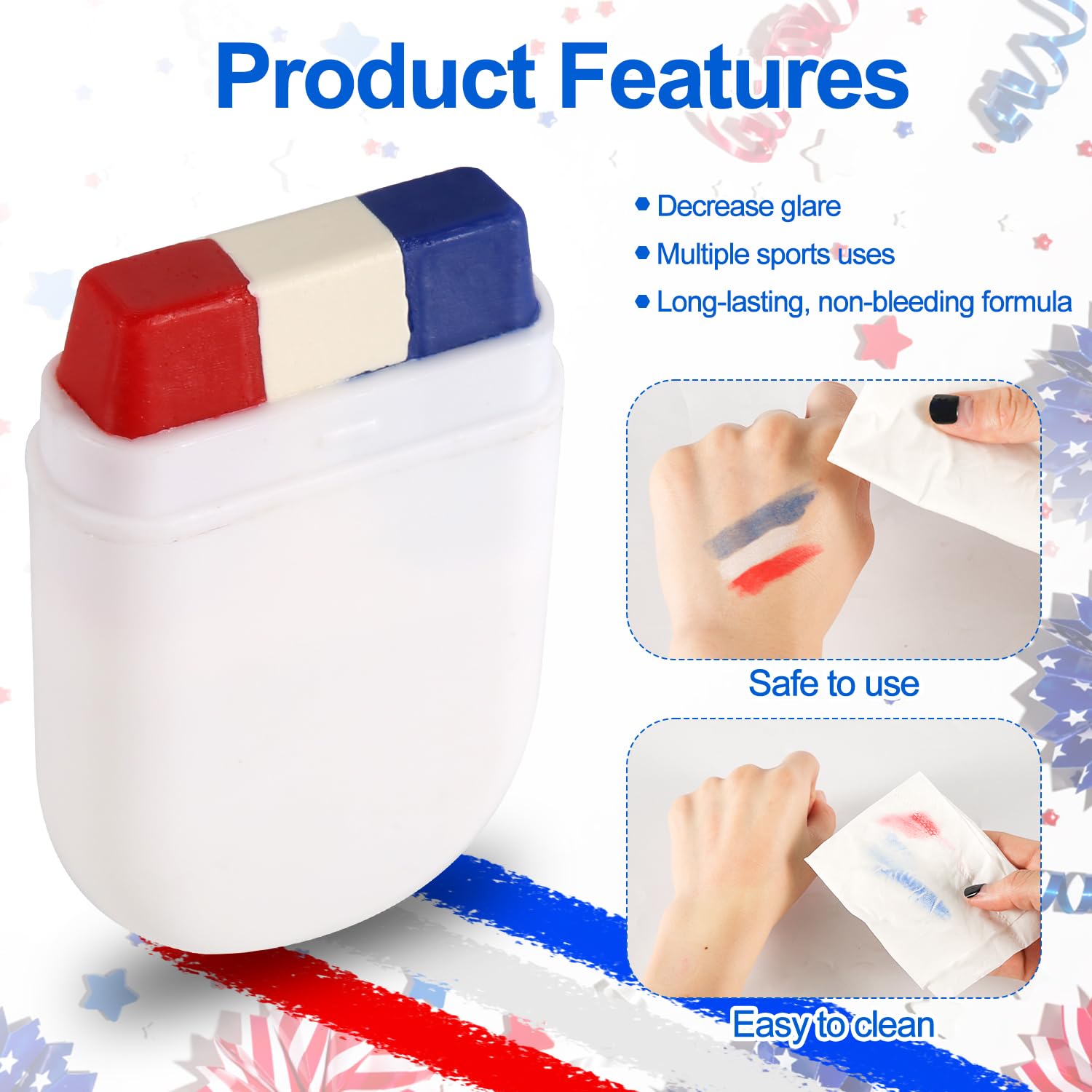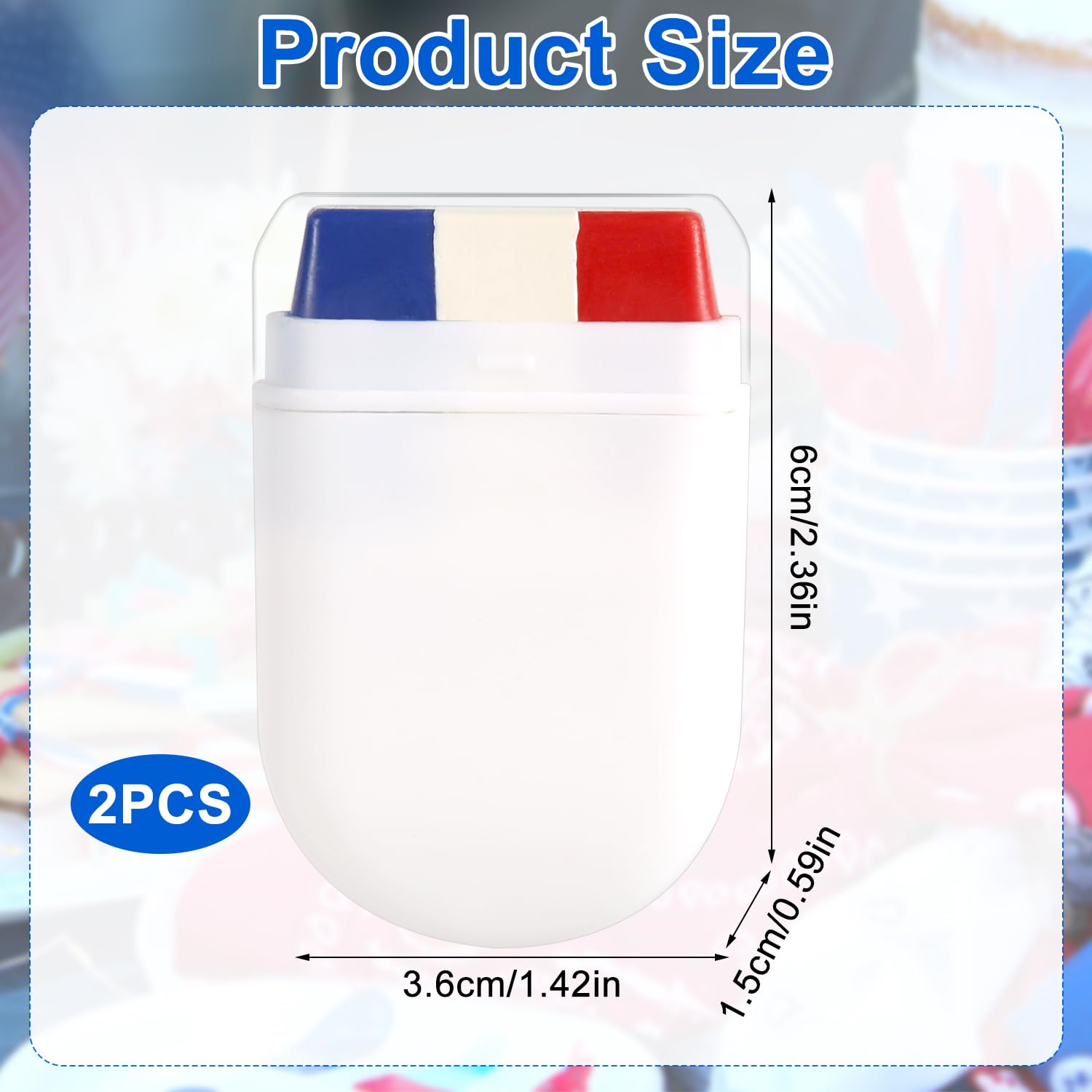 2pcs Patriotic 4th of July Face Paint, Red White & Blue USA American Flag Face Paint Stick Softball Baseball Face Paint Sports Events & Independence Day Stuff for Athletes Men Women Kids