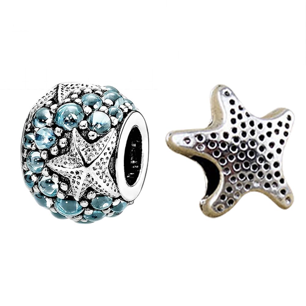 2PCS Summer Oceanic Starfish Charms 925 Sterling Silver Dangle Pendant Charm DIY Beads with Cubic Zirconia, Bracelet Charm Fashion Jewelry Fits for Pandora Bracelet DIY Making Gift for Women Girls