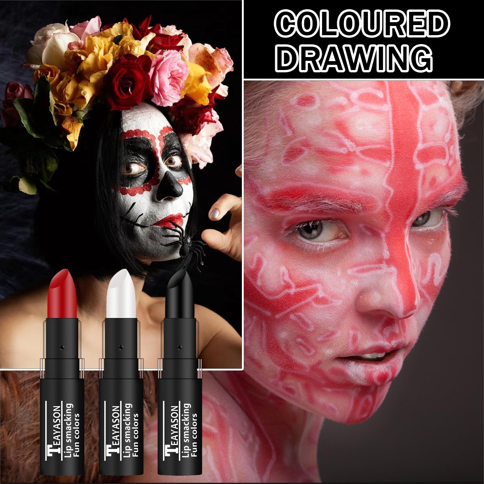 3 PCS Eye Black Stick,White Red Cream-Blendable Stick Highly Pigmented Eye Black Baseball/Football/Softball,Face Body Paint Stick Black Matte Lipstick for Goth Clown SFX Halloween Makeup
