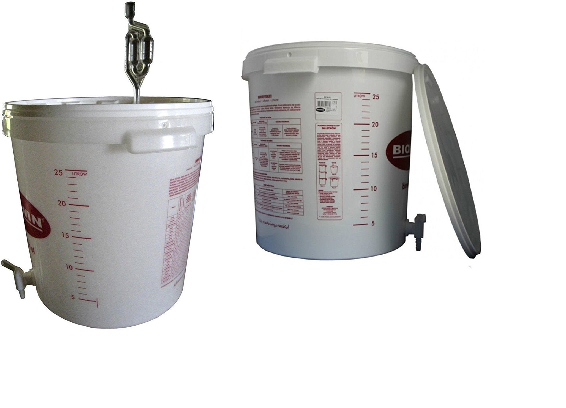 new 30 litre fermentation bucket made from food-safe plastic with measure scale