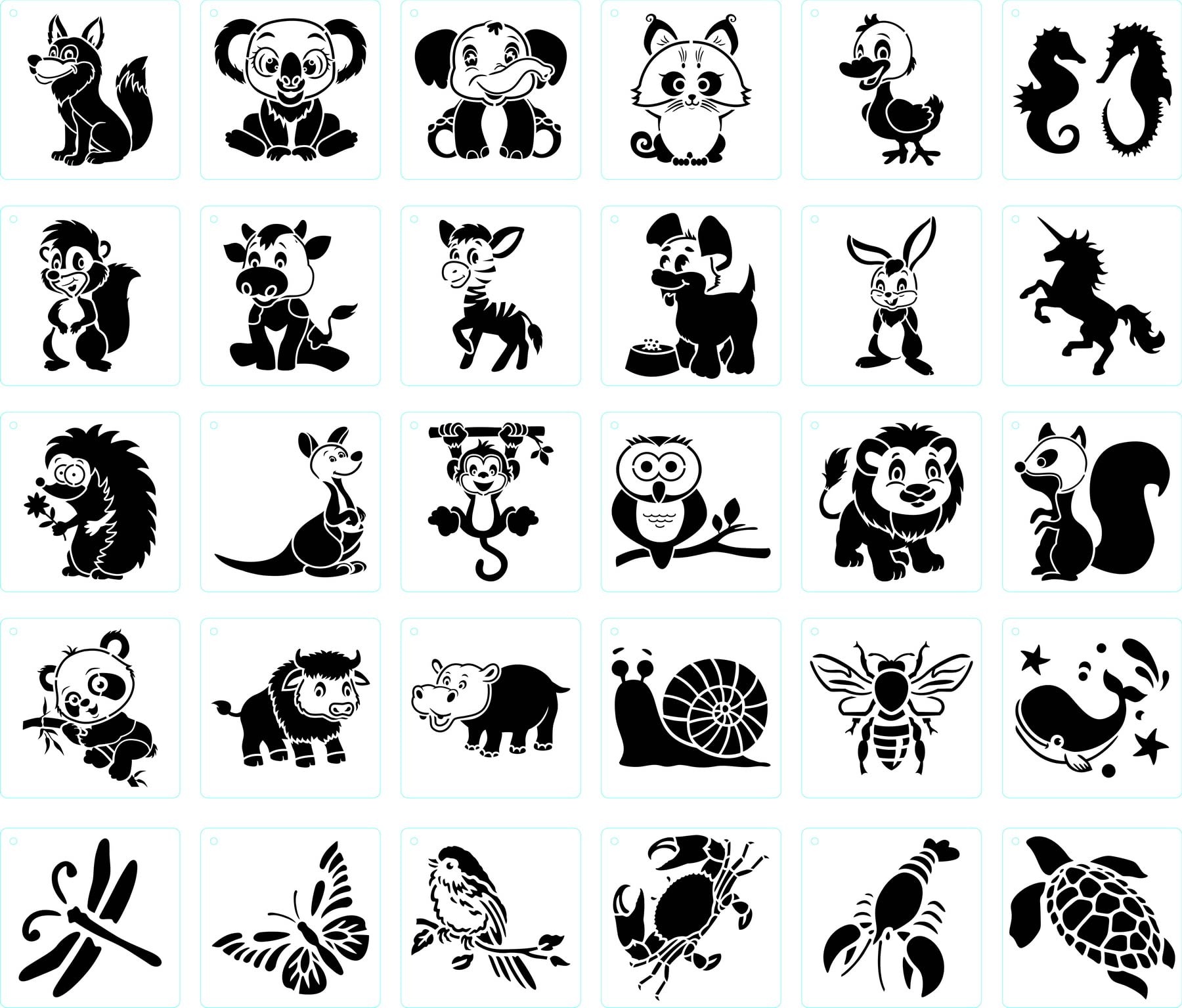 30 Pcs Animal Stencil?Small Animal Drawing Stencils?Reusable Cartoon Template?Elephant Horse Monkey Butterfly Stencil for Painting?DIY Crafts Stencils