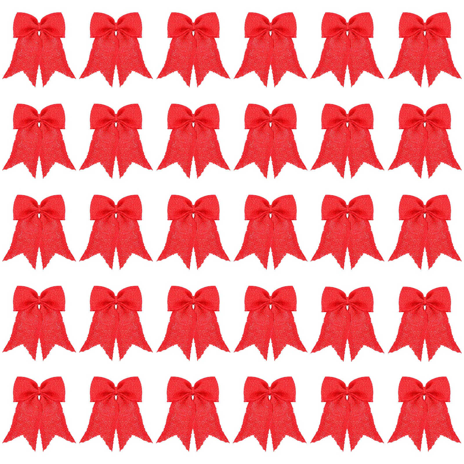 30 Pieces Burlap Bows Burlap Bow Knot Handmade Burlap Decorative Bowknot Natural Ornament Bow for Christmas Decorate Tree Festival Holiday Party Supplies (Red)
