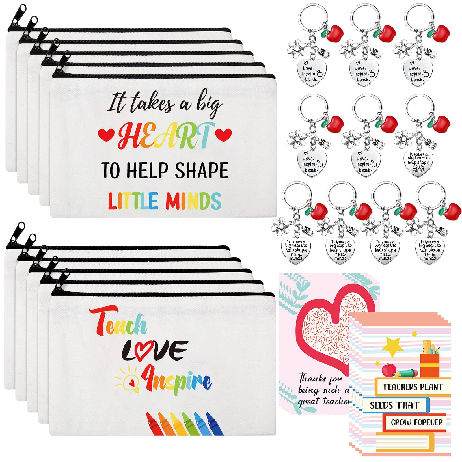 30 Pieces Teacher Appreciation Gift Set 10 Pcs Teacher Cosmetic Bags Makeup Pouch 10 Pcs Teacher Keychains and 10 Pcs Teacher Thank You Cards, 10x15 cm, Makeup Bags