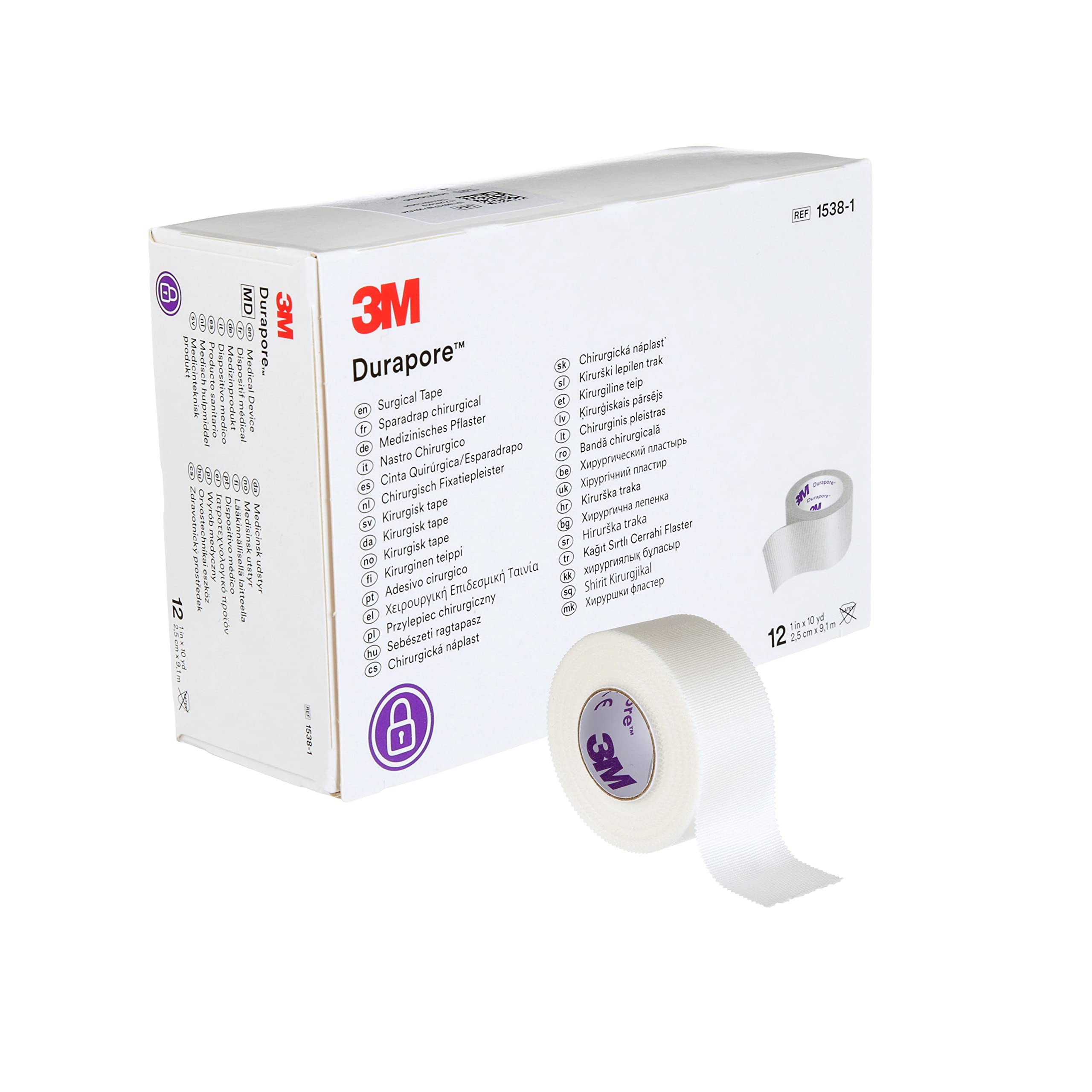3M Durapore Surgical Tape is a "silk-like" cloth tape with a latex-free, hypoallergenic adhesive that offers high strength and adhesion. It especially adheres well to dry skin. Durapore™ Surgical Tape is the most economical, high-strength and high-adhesion tape offered by 3M. This tape is conformable and has bi-directional tear. It is excellent for securing regular and bulky dressings, tubing, and immobilization. Product Features: Available in several width sizes and packaging. Easy, straight, bi-directional tear allows clinician to tailor the tape. High strength for durability. Adheres well to dry skin. Conformable. Versatile. Latex-free and hypoallergenic for sensitive patients. Water-resistant. Suggested Applications: Securing tubing and devices (e.g., catheters, I.V. tubing). Anchoring bulky dressings. When tape width must be customized. Immobilizing fingers and toes. Stabilizing finger splints. The product referenced on this detail page is sold by the box of 12.* 12 Rolls Per Box* Model 15381