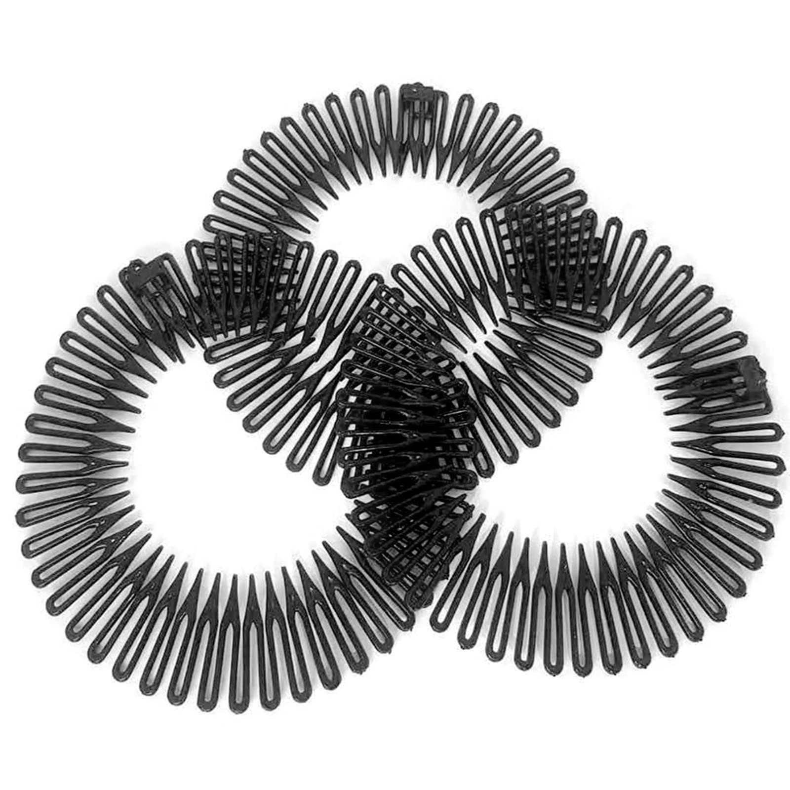 3Pcs Comb Headband Black 90s Comb Headband Full Circle,Stretch Comb Headband Flexible Plastic Circle Comb Zig-zag Headband Stretch Hair Comb Headband Hairband Holder for Girls Women
