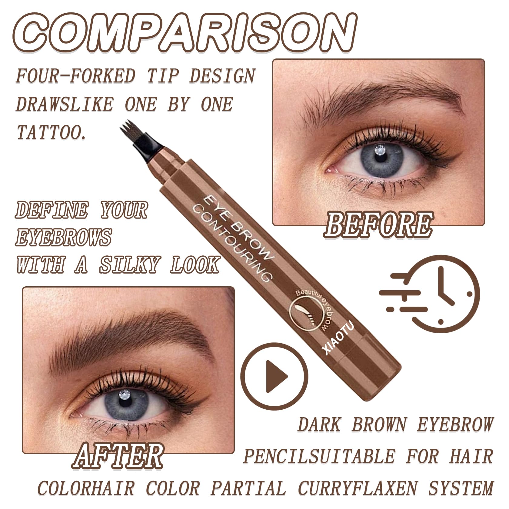 3PCS Eyebrow Microblading Pen,Eyebrow Pencil with a Micro-Fork Tip Applicator,Long Lasting Waterproof Brow Tattoo Pen,Smudge-Proof Eye Brow Pencils for Women,Dark Brown