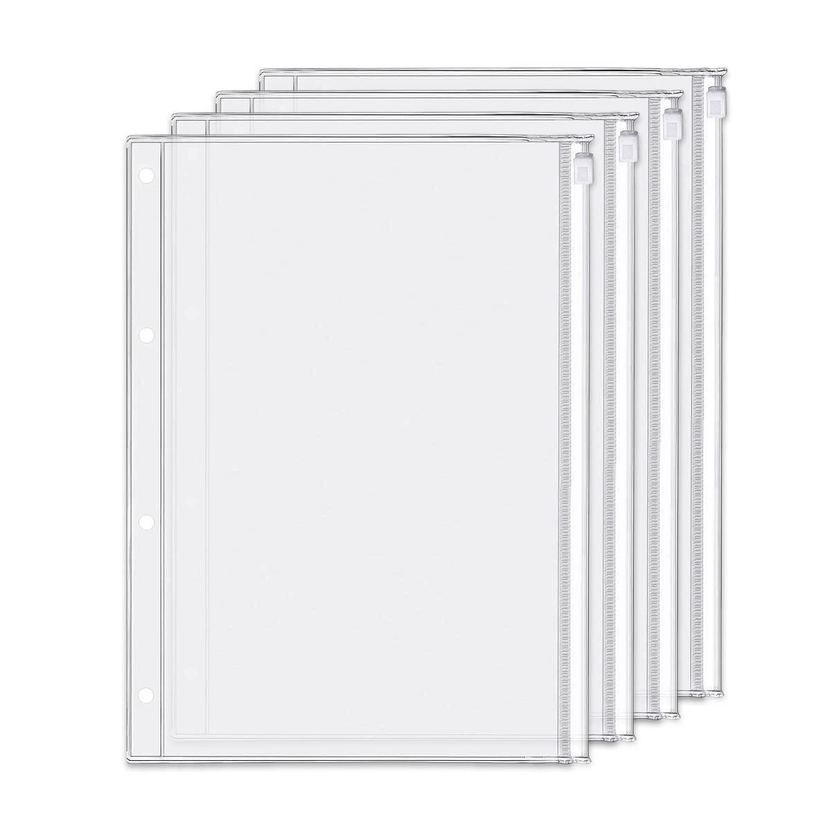 4 Pack A4 4 Holes Binder Zip Pockets Plastic Binder Zipper Folders Waterproof 4 Holes Zipper Loose Leaf Bags Zip Lock Envelope for Documents Notebooks Cards (Zip Pocket, A4)