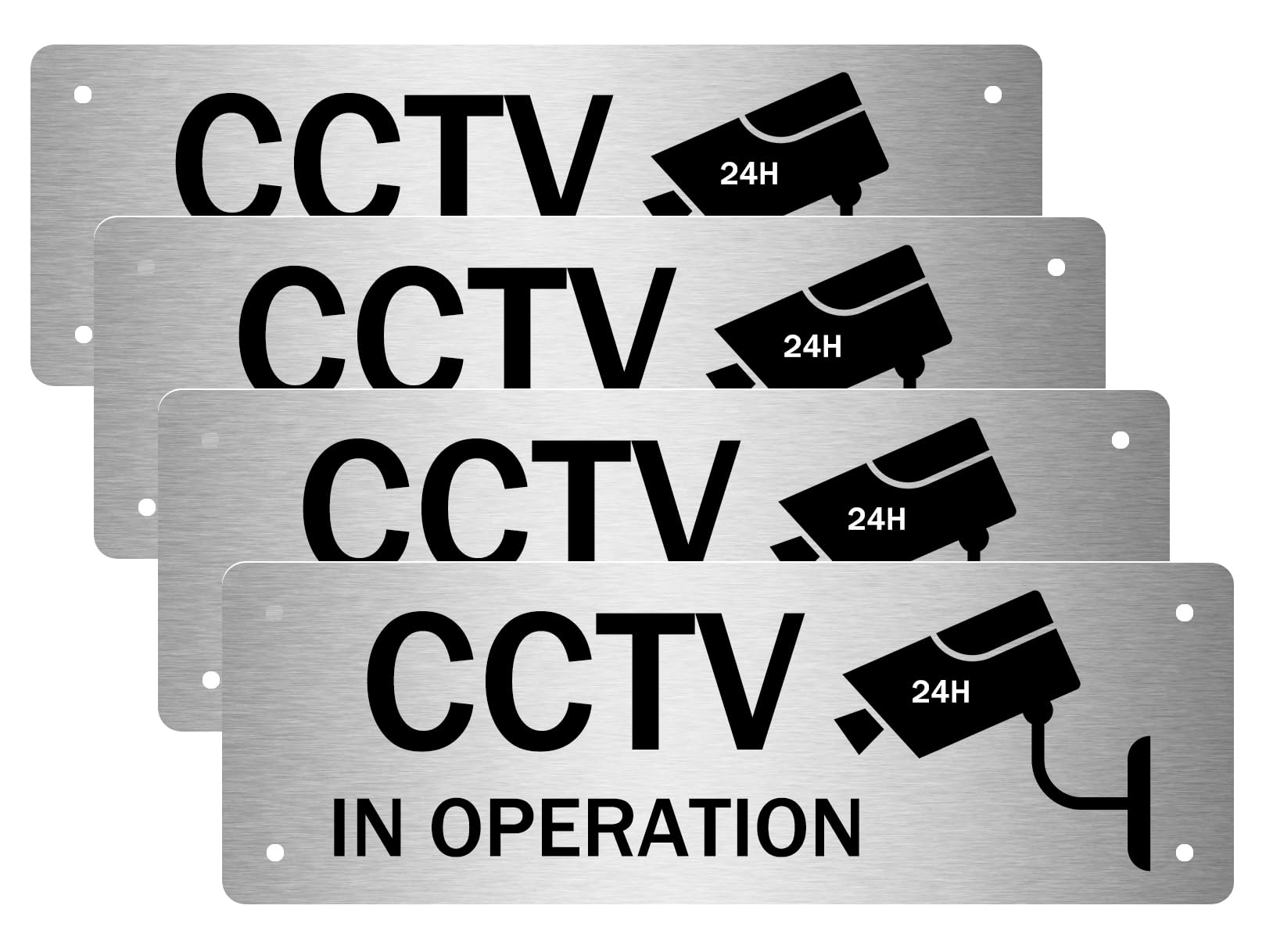 4-Pack CCTV In Operation Sign,CCTV in Operation Aluminum Sign with Self-Adhesive Stickers for House and Business Indoor or Outdoor Use,UV Resistant, Anti-rust,15 x 5cm 4pcs