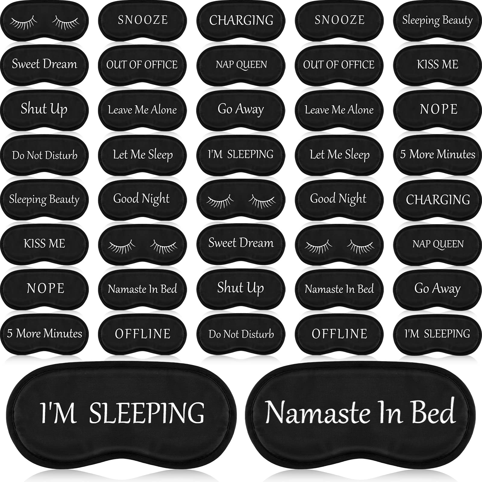 40 Pcs Funny Silk Sleep Eye Mask Soft Night Sleep Mask Bulk Eye Mask for Sleeping Blackout Blindfolds with Adjustable Strap for Women Men Kids Travel Nap Meditation Party Gifts Favors(Black)