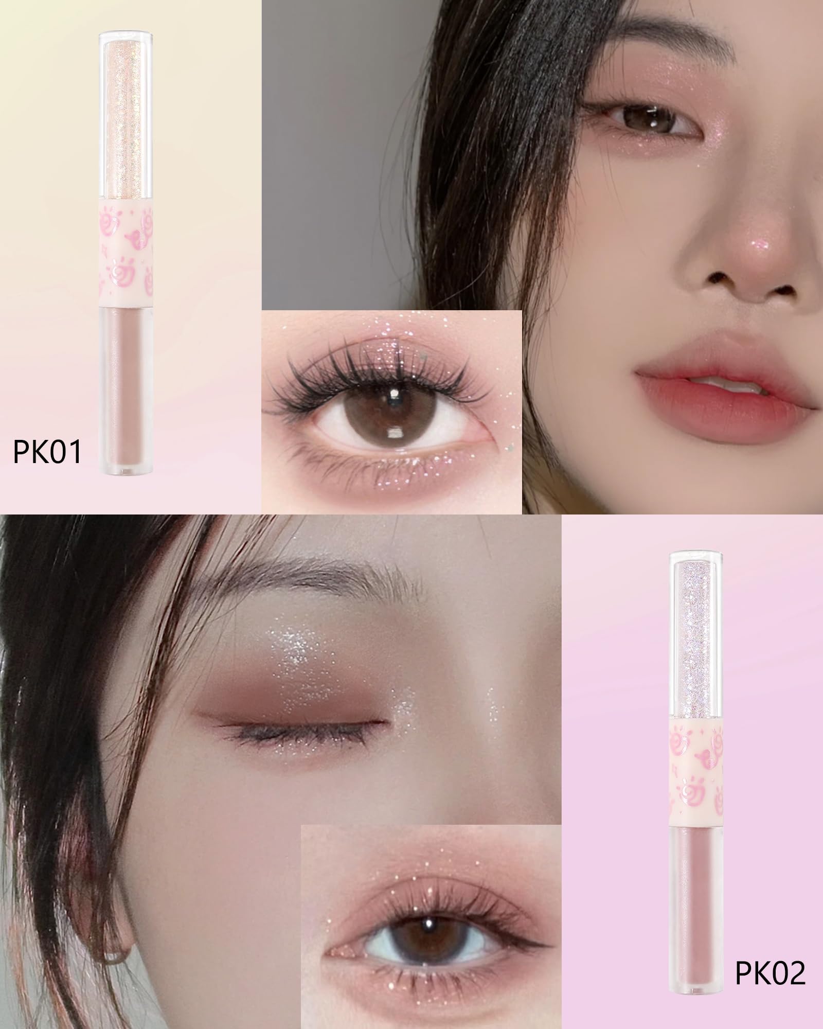 1. This eyeshadow liquid features velvety matte finishes and glittery shades in a 2-in-1 dual-ended design. You can use the matte eyeshadow alone or mix it with the shimmery eyeshadow to quickly create a colorful eye look that suits many occasions.