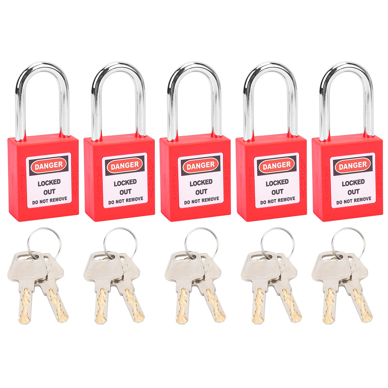 5 Sets Lockout Tagout Lock, 38mm Lockout Lock Insulation Safety Engineering Loto Padlock, for Machinery Manufacturing(red)