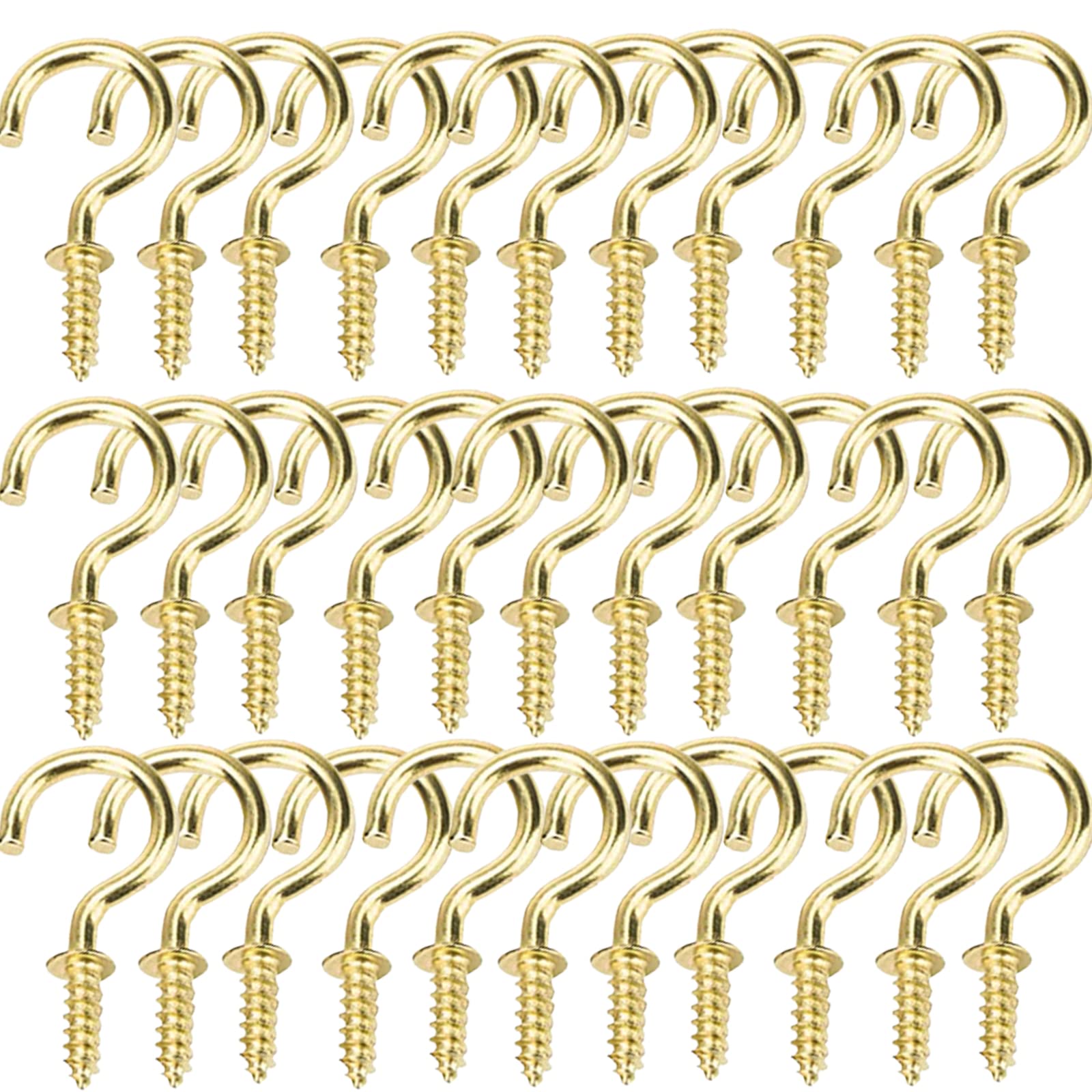 50 Pcs Screw-in Ceiling Hooks Screw Hooks Cup Hooks Nickel Plated Hooks for Cabinet Shelf Silver 1 inch (Gold)