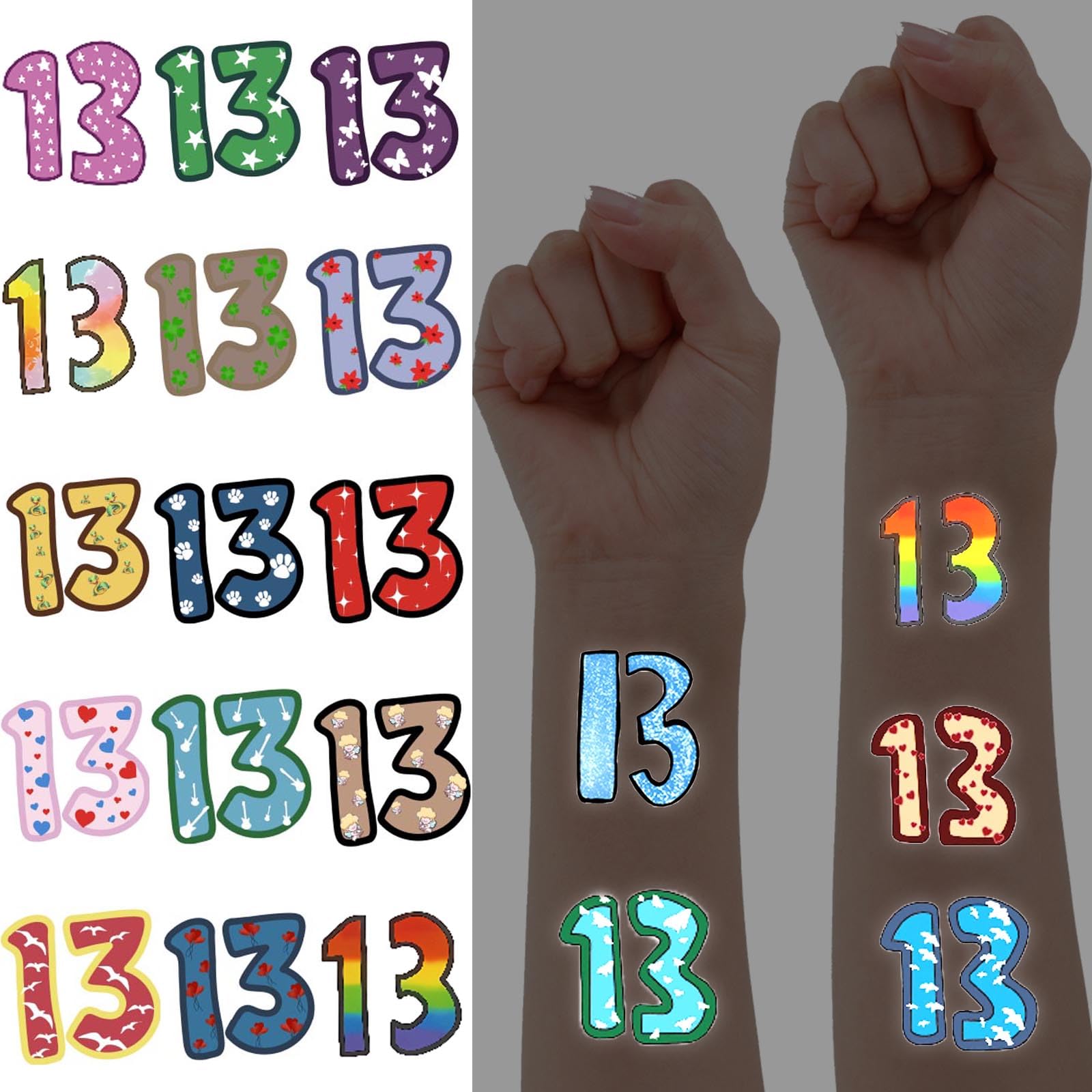 ?Step into the spotlight with our exclusive set of temporary tattoos, which 50 captivating designs featuring the mesmerizing glow-in-the-dark number 13. These unique tattoos not only add a touch of intrigue to your ensemble but also serve as a conversation starter, sparking curiosity and admiration wherever you go.
