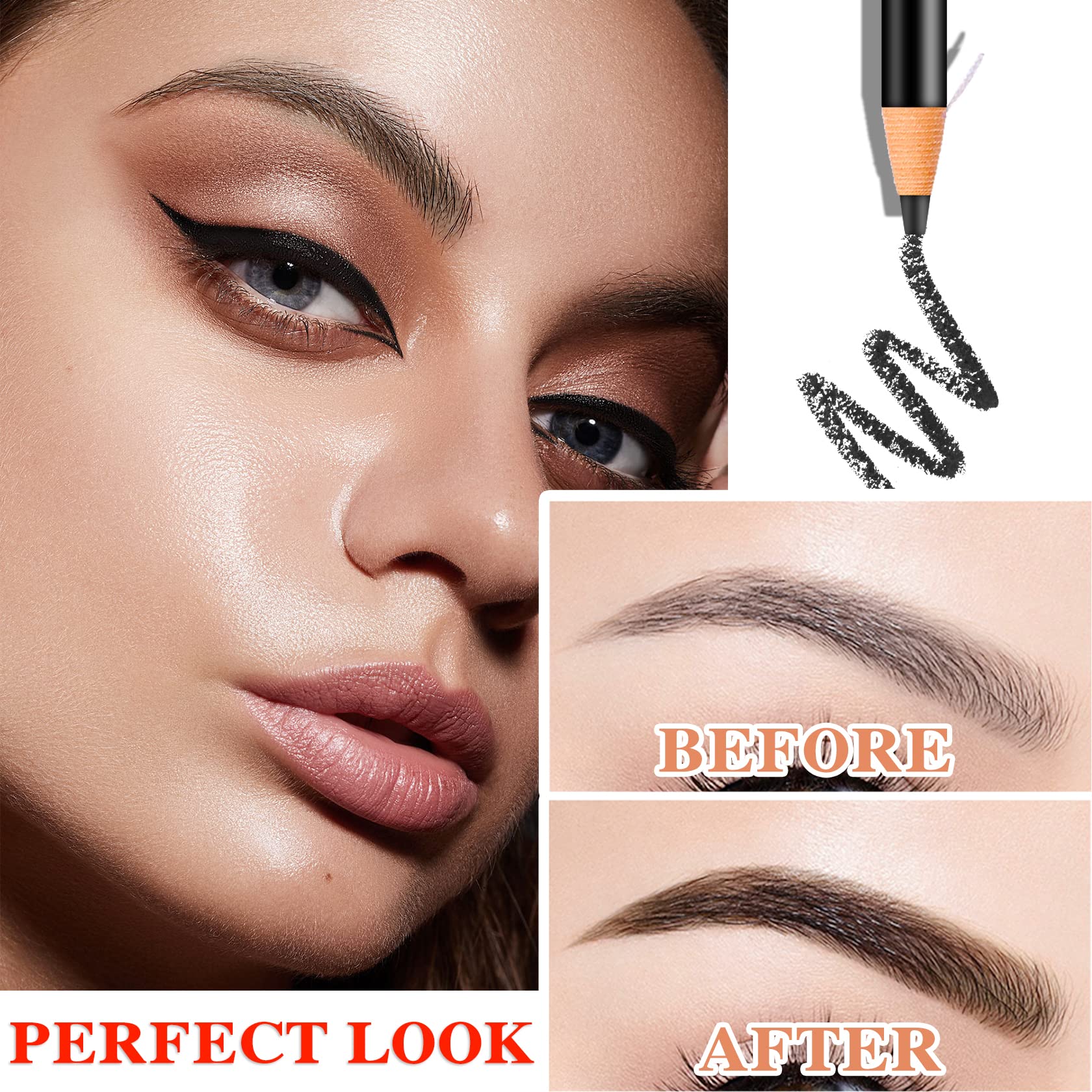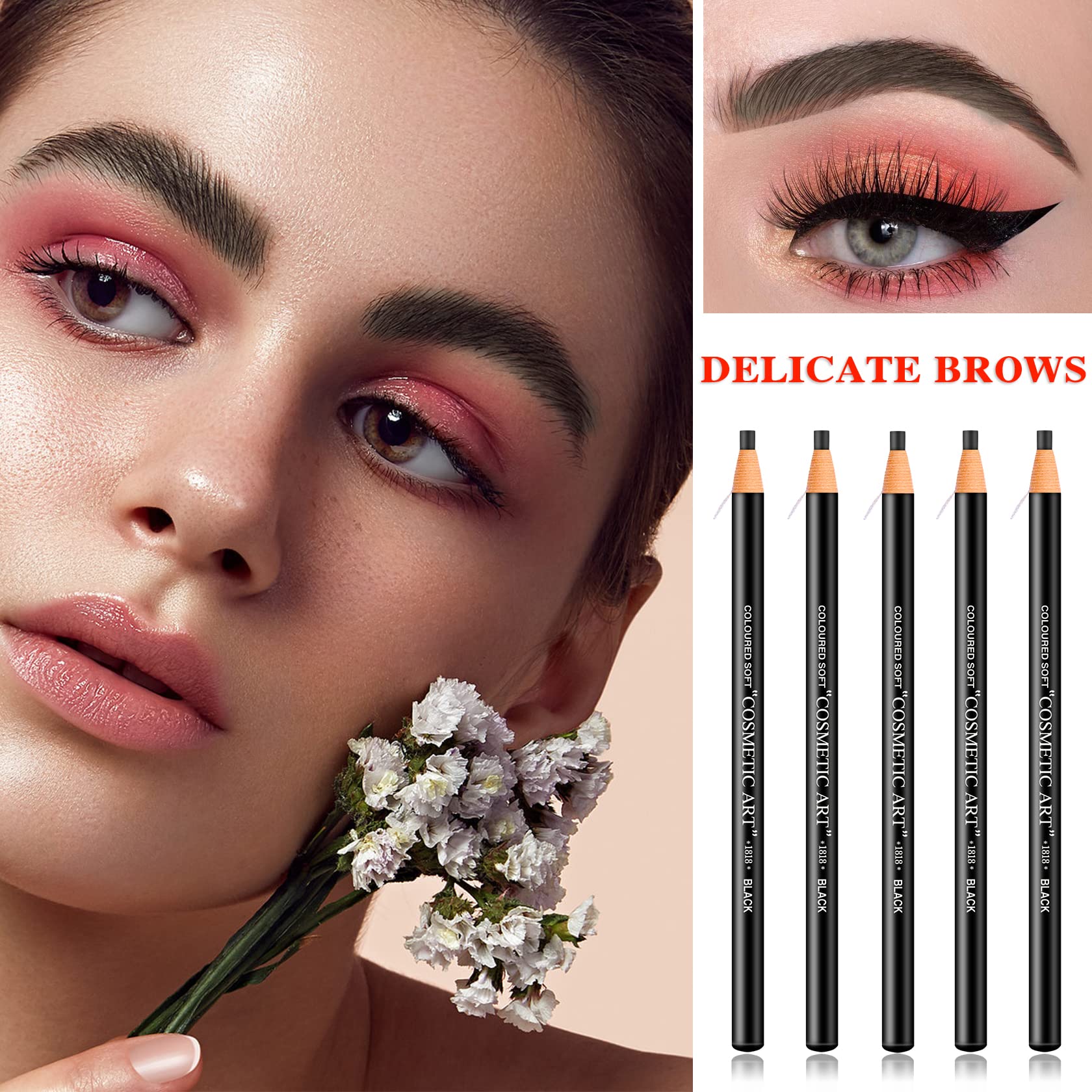 5P Waterproof Eyebrow Pencil,Pull Cord Peel-off Brow Pencil Microblading Eyebrow Pen Supplies Set Brow Pen Eyebrow Tattoo Makeup for Marking,Filling and Outlining,with Eyebrow Trimming Tool(Black)