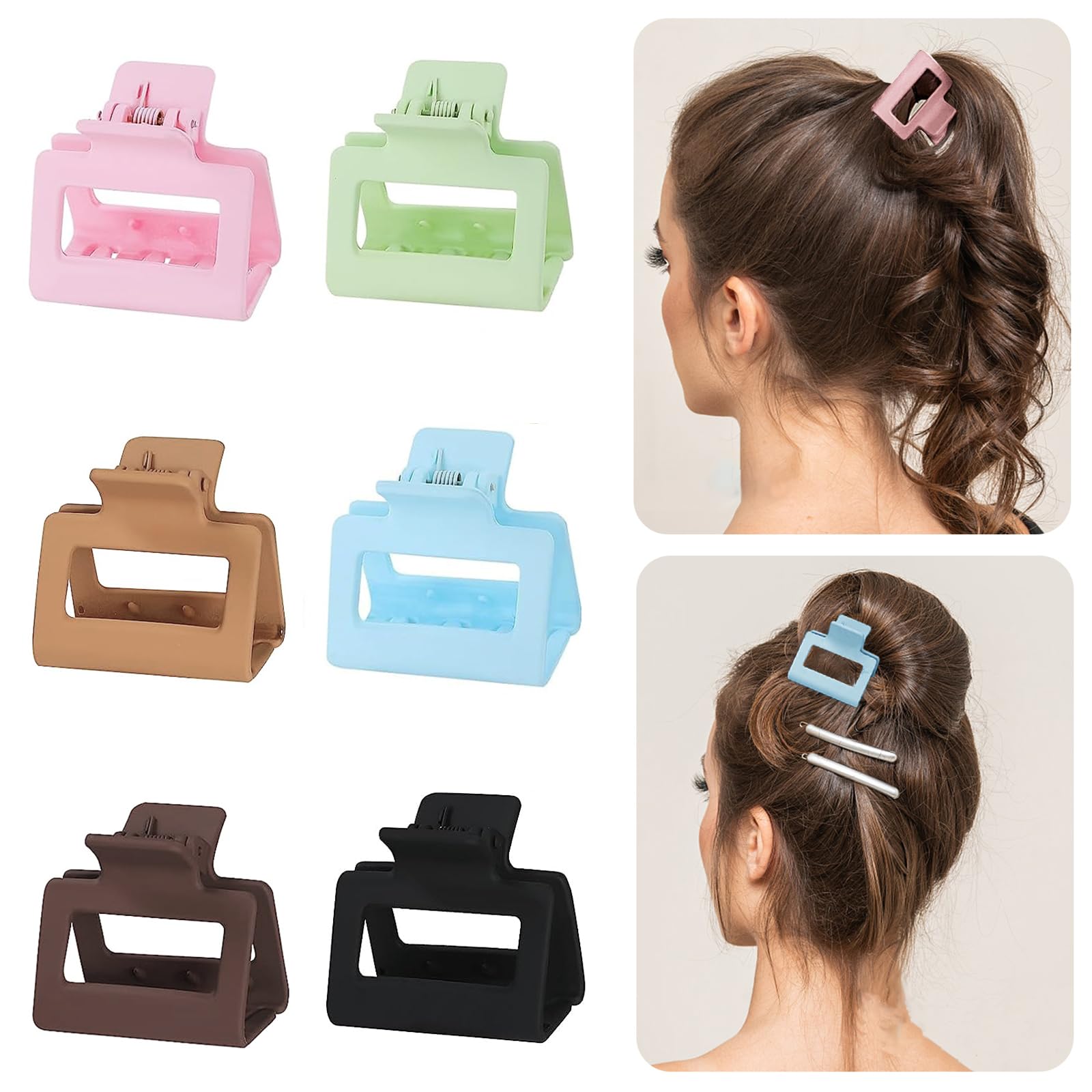 6 Pack Claw Clips Hair Clips for Women Girls Medium Rectangle 2 Inch Small Hair Clips for Thin or Medium Thick Hair