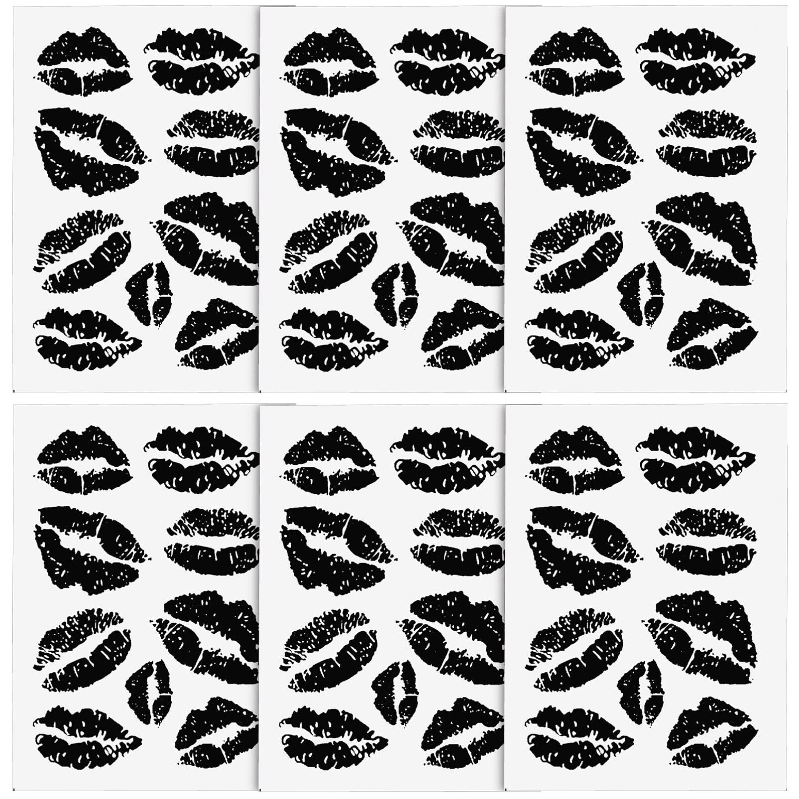 6 Sheets Lip Prints Stickers Waterproof Kiss Fake Valentines Lip Self-adhesive Fake Black Lips Stickers