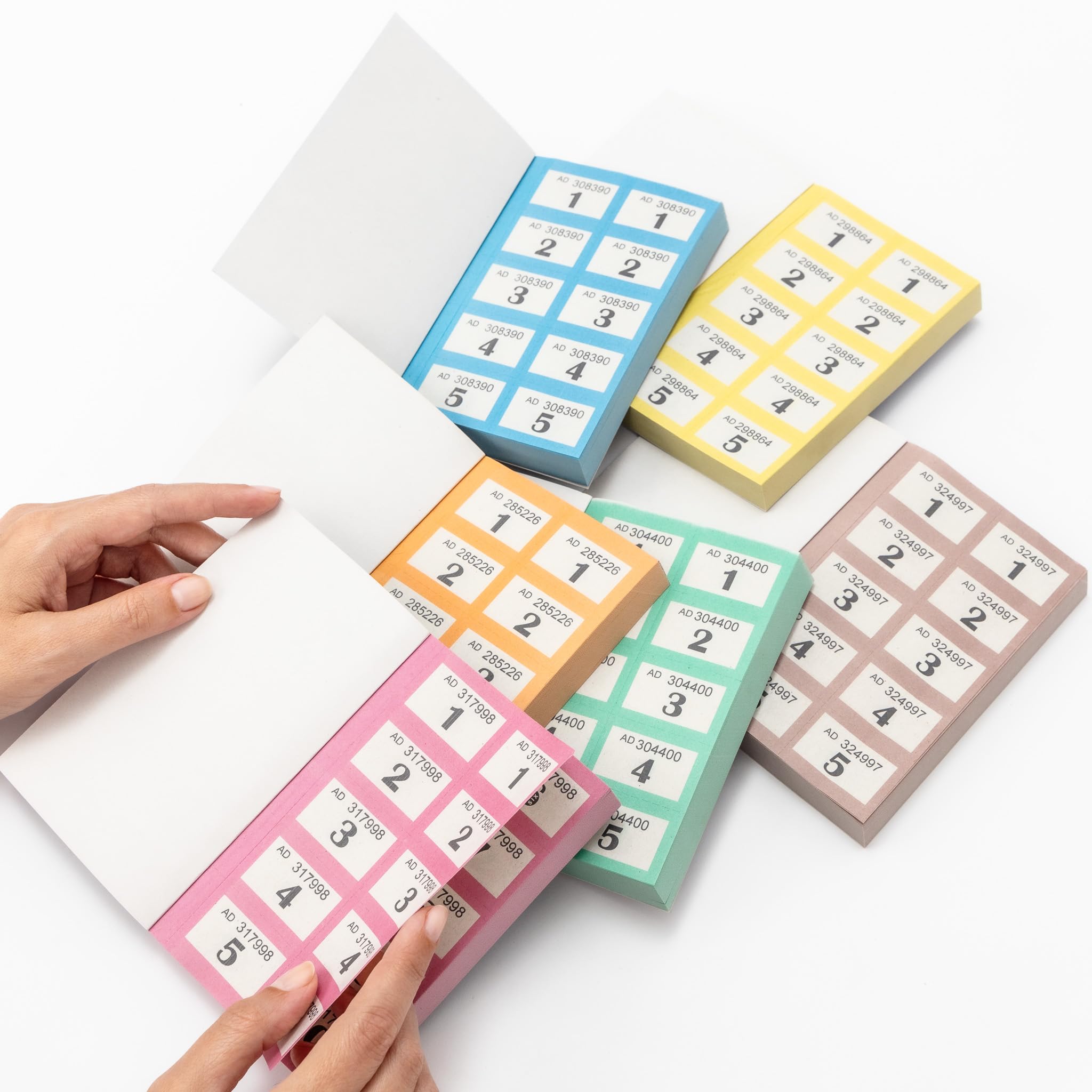 Pack of 6 Cloakroom and Raffle Ticket Books (Mixed Colours)