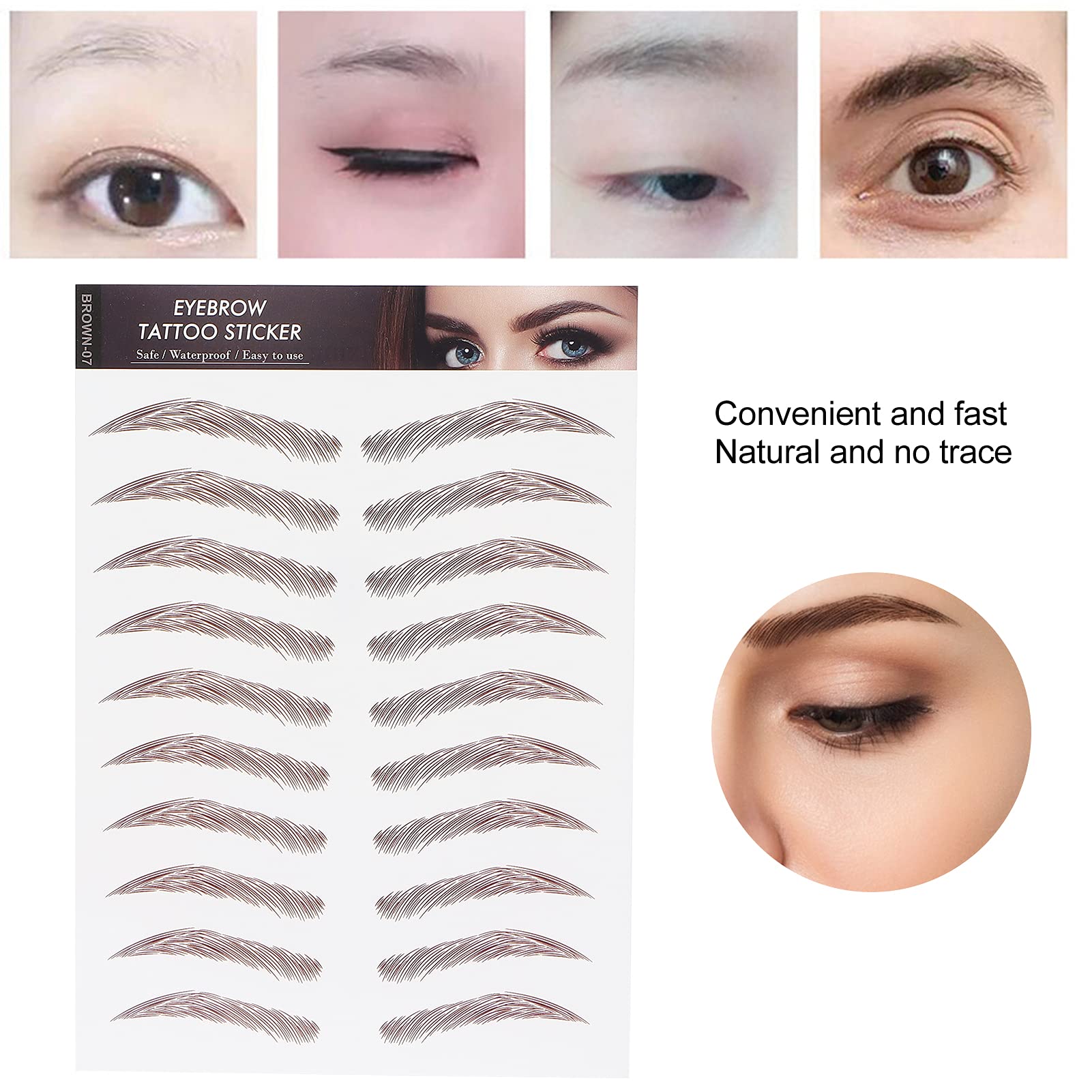 6D Eyebrow Tattoo Sticker Professional Waterproof Eyebrow Transfer Sticker Eyebrow Makeup Tool for Women and Girls (Brown)(BROWN-07)