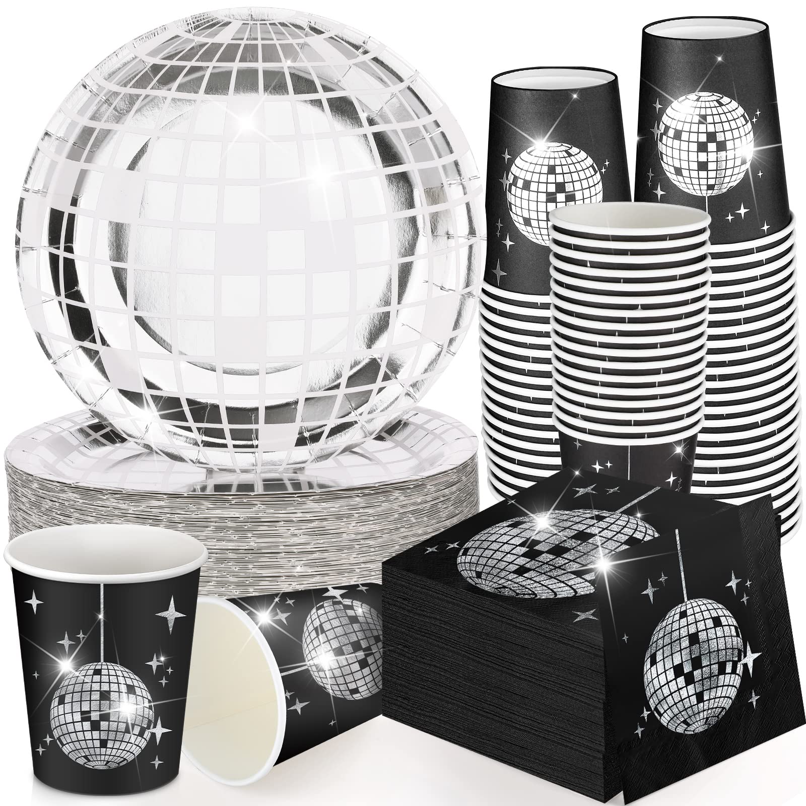 Features: The party plates and napkins sets are not only can be applied in various parties, but they are also suitable for daily family gatherings, they can bring much convenience for your home. The 70s decorations for party are also large in quantities, so you can store them for a long time. They can also be regarded as disposable tools so that can save your washing time after party. Specifications: Material: paper Color: as shown Size: as the pictures shown Package includes: 50 x Disco paper party plates 50 x Disco ball cups 50 x Disco napkins Notes: Manual measurement, please allow slight errors on size. The color may exist a slight difference due to different screen displays.