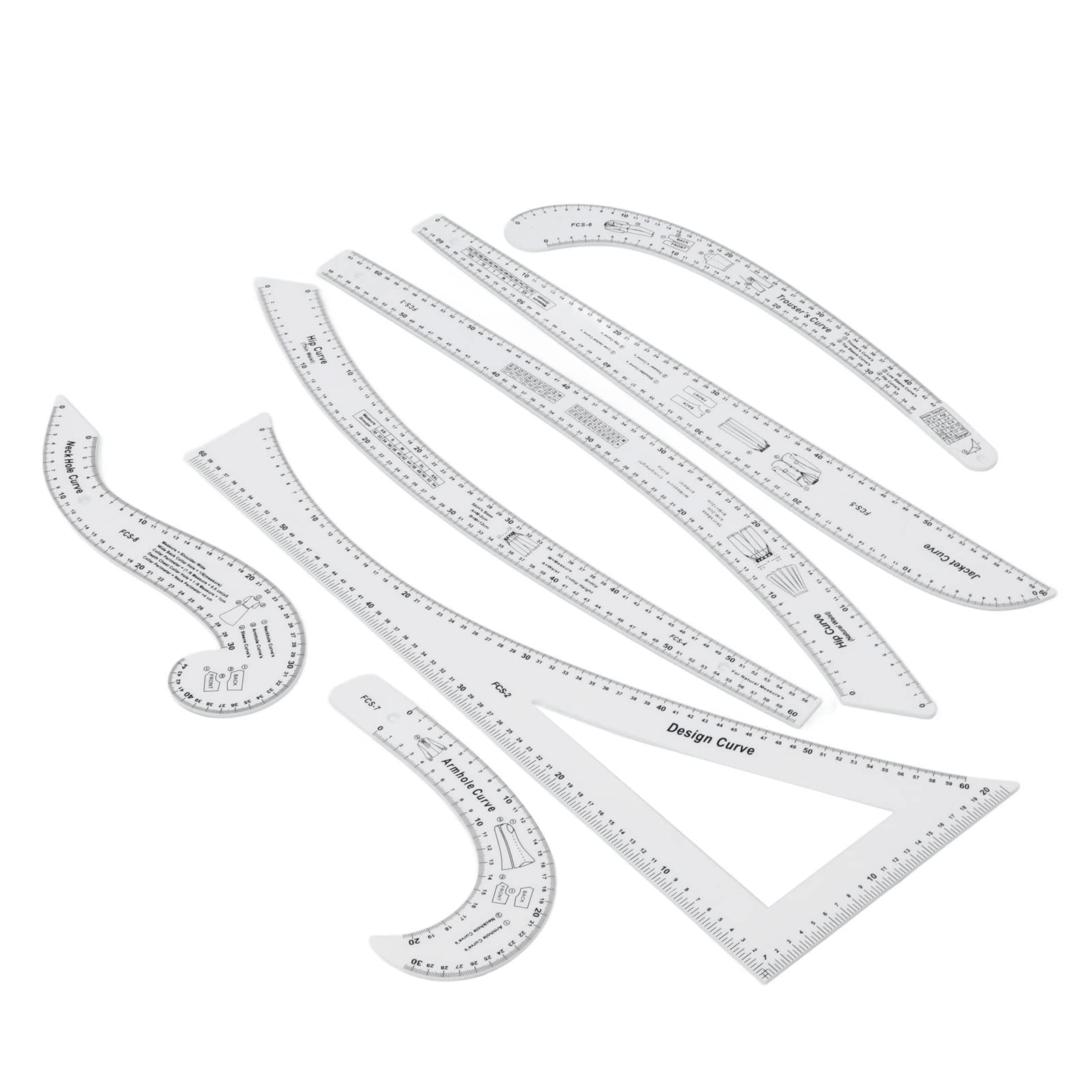 7Pcs Fashion Clear Metric Sewing Ruler Set, French Curve Pattern Ruler Kit for Beginners, Tailors, and Designers, Fashion Design Dress Makers Ruler, Clear Sewing Tailors Pattern Making Ruler