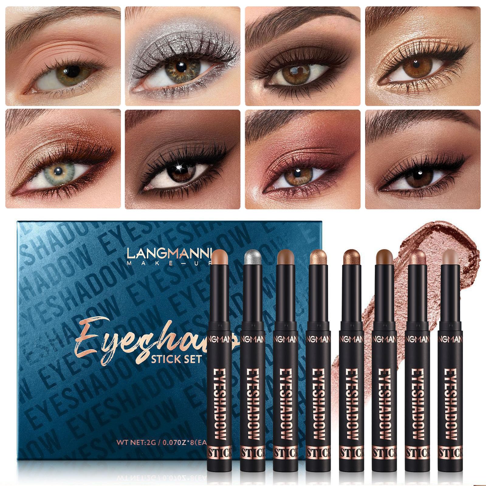 8 Colors Eyeshadow Stick Set,Matte Professional Long Lasting Bright-Colored Contouring and Highlight Cream Eyeshadow Stick,Waterproof Multi-Color Glitter Eye Shadow Pencil,Eye Makeup for Women?Set A?