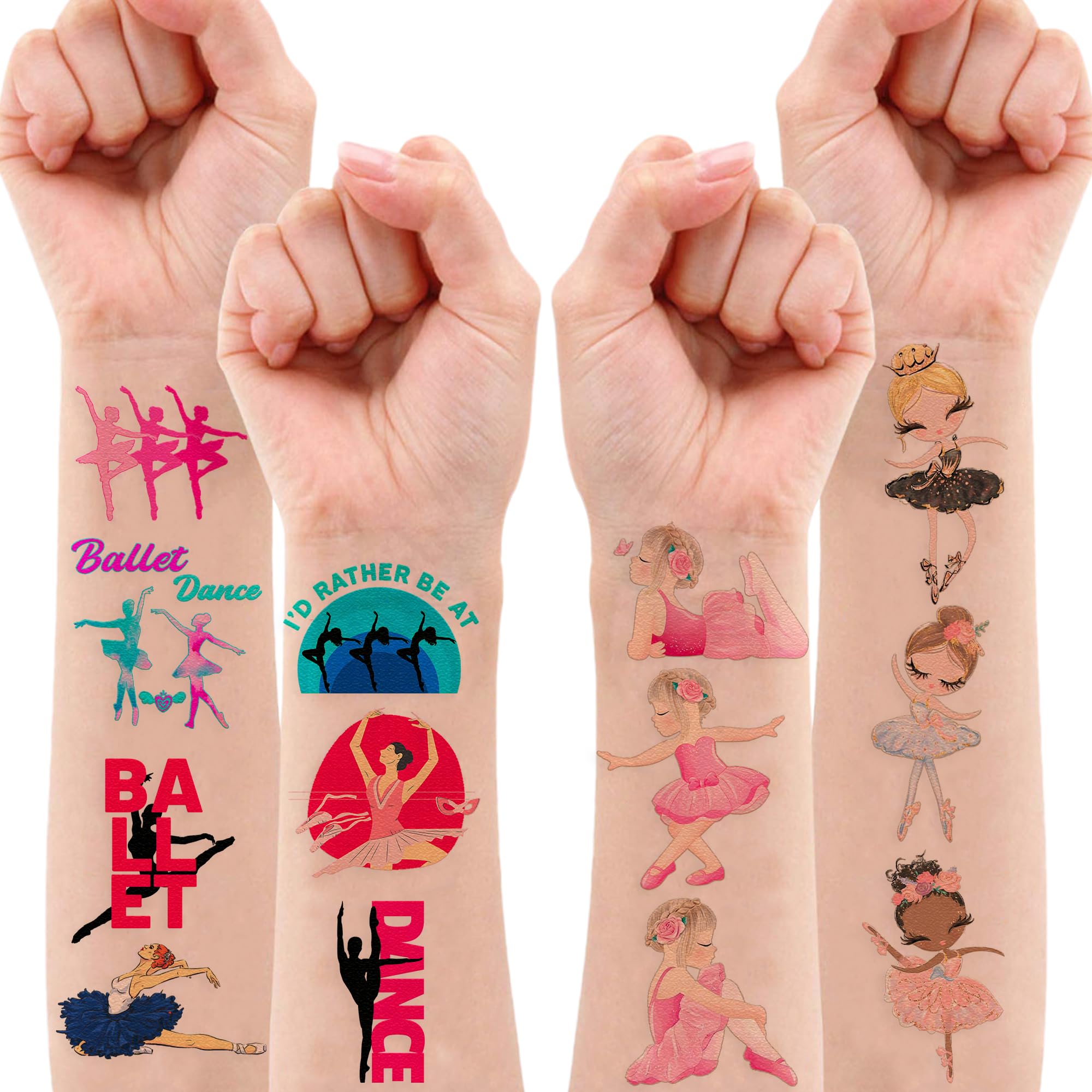BALLERINA TEMPORARY TATTOO: Tattoo is the best gift for birthday party together with the significant meaning that it says and will accommodate your expectations at birthday party, party decorations, and special celebrations. Each tattoo set covers 8 sheets in total with 96 Pcs. The dimension of each sheet is 6.1*3.1 inches, including tattoo pieces that have proportions reasonable for adults to kids. Our tattoo stickers designed in different styles promise to develop the impression for the party. BALLERINA BIRTHDAY PARTY DECORATIONS : If you haven’t had the option for BALLERINA birthday party decorations yet, BALLERINA tattoos complete with BALLERINA shoes, BALLERINA outfit, BALLERINA costume, BALLERINA doll, BALLERINA girl, can will be a terrific choice for children on their momentous day. Sure enough to believe that kids have fun playing with our tattoo stickers. SAFE AND HIGH QUALITY: Our temporary tattoos are made of environmentally friendly materials and are non-toxic. These tattoos are made of high-quality safety and green paper. USAGE: First, you cut each tattoo from the sheet and remove the transparent paper. Next, you stick it on your hands, arms, face, or wherever you feel safe. You even can put it down on glass, suitcase, water bottle, luggage, laptop, phone case, etc. Thirdly, wet it with a few drops of water and wait for about 20-30 seconds, then remove the backing paper thoroughly. As a result, you have a velvety tattoo. As it is a temporary tattoo, you can remove it quickly using water, soap, or hand sanitizer. CUSTOMER SERVICE: Not recommended for people with a history of sensitive skin. If symptoms appear, stop using immediately. Anyway, if you need help with using our product, feel free to contact us. We will make sure to solve problems and help you have a fantastic buying experience.