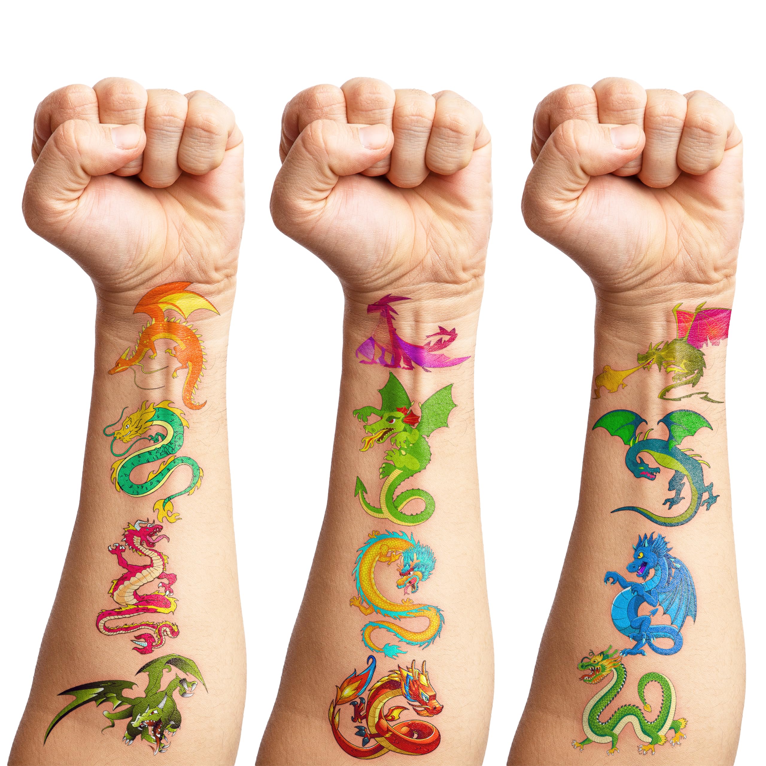 ??DRAGON PARTY DECORATIONS: Hey there! You'll be receiving an awesome set of 18 sheets of DRAGON temporary tattoos with 81 pieces. Isn't that amazing? You'll have plenty to use daily, replace, or even share with your friends and family. So get ready to show off your unique style and have some fun with these cool tattoos! ??DRAGON PARTY FAVORS: Our temporary tattoos feature DRAGON elements that blend Eastern legends with Western mythology. Ideal for children and adults who enjoy exploring DRAGON themes, kid's birthday parties, DRAGON-themed parties, pinata fillings, game prizes, classroom rewards, gift-back to school celebrations, and outdoor sports. ??SAFE AND HIGH QUALITY: We create temporary tattoos using high-quality, eco-friendly paper that is safe to use. Our tattoos are visually appealing and made with utmost care for our clients' safety. ??USAGE: Before removing the tattoo, it's essential to take off the clear paper from the sheet. You can choose any covered surface like your arms, hands, face, or objects like a water bottle, purse, laptop, or phone case to apply the product. Wait 20 to 30 seconds, sprinkle a few drops of water on the tattoo, and remove the backing paper. You'll have a gorgeous, velvety tattoo that can be easily removed with baby oil, soap, or water. Go ahead and enjoy your stunning new look! ??CUSTOMER SERVICE: If you have sensitive skin, we advise against using this product. In case of any symptoms, please stop using it immediately. Our team is always here to help and make sure you have a positive shopping experience. Please do not hesitate to contact us for assistance.