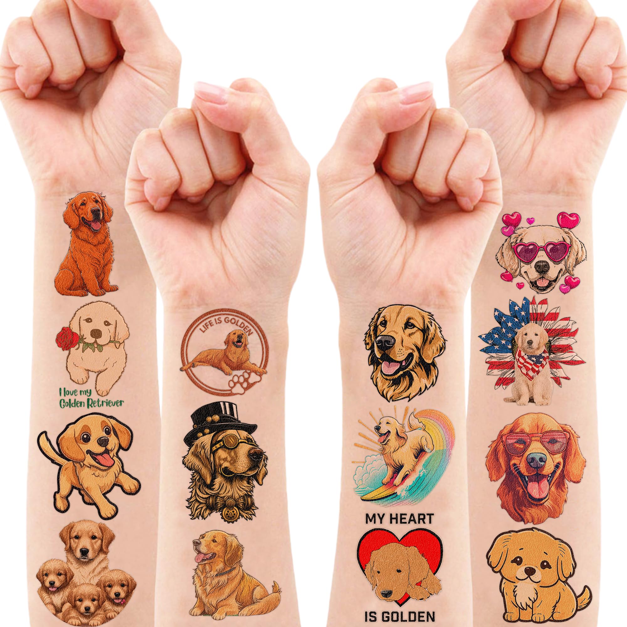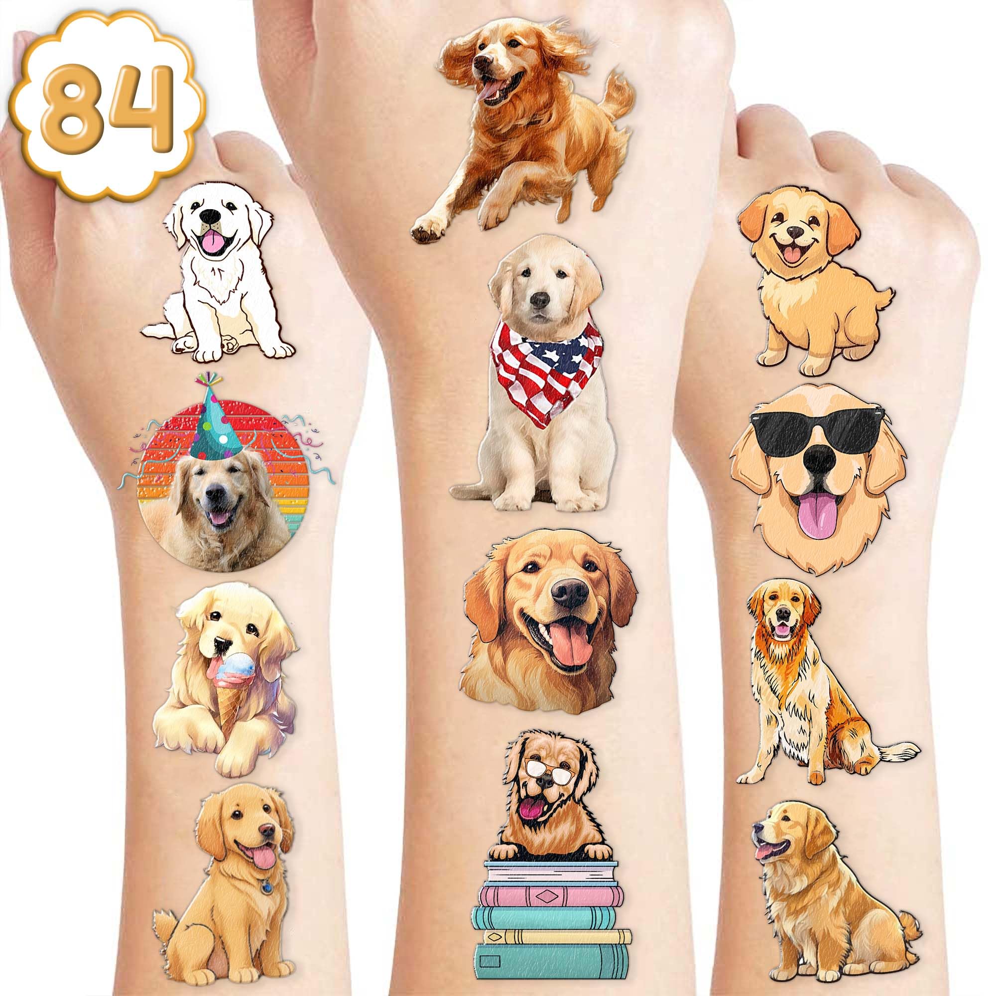 ??PUPPY CUTE DOG TATTOO: Hey there! You'll be receiving an awesome set of 8 sheets with 84 DOG tattoos pieces in 6.1X3.1 inches. Isn't that amazing? You'll have plenty to use daily, replace, or even share with your friends and family. So get ready to show off your unique style and have some fun with these cool tattoos! ??GOLDEN RETRIEVE BIRTHDAY PARTY: Our GOLDEN RETRIEVER party supplies feature a cute and fun design with unique patterns of GOLDEN RETRIVER that will make your party more lively. Perfect for all birthday parties and gatherings with friends and family! ??SAFE AND HIGH QUALITY: We create temporary tattoos using high-quality, eco-friendly paper that is safe to use. Our tattoos are visually appealing and made with utmost care for our clients' safety. ??HOW TO APPLY: Firstly,Cut out the pattern and peel off protective film. Secondly, place the tattoo on to skin or objects like a water bottle, purse, laptop,phone case,etc. Next, wet the paper until it soaked.Then, light pressure tattoo on the paper for 10 seconds.Finally, remove the tattoo paper it's done. Go ahead and enjoy your stunning new look! And You'll have a gorgeous, velvety tattoo that can be easily removed with baby oil, soap, or water. ??THINGS TO NOTES: Do not apply around eyes, lip or sensitive skin area.Under no circumstances should anyone under the age of four use this without adult supervision. Our team is always here to help and make sure you have a positive shopping experience. Please do not hesitate to contact us for assistance.