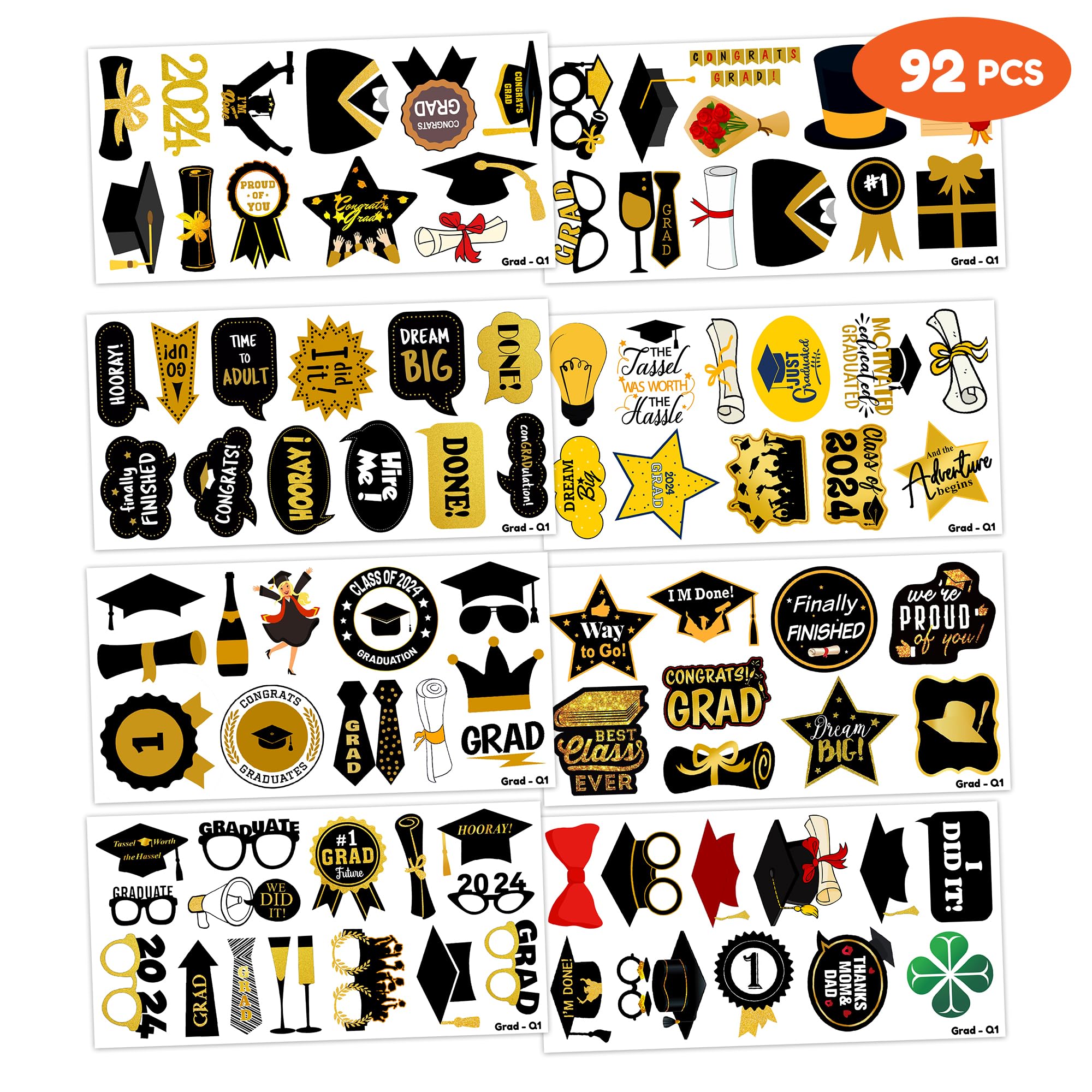Cute Happy Graduation Congrats Grad Party Supplies: 8 sheets Happy Graduation Class Graduates High School College theme temporary tattoos stickers, features an assortment of cute themed characters, each pattern measures 6.1 x 3.1 inch , all kinds of designs and colors will bring more fun to your party, one size fit all adult and kids. Perfect Happy Graduation Congrats Grad Birthday Decorations: All the temporary tattoos are design with many themed. Fits any smooth part: face, hands, arms, shoulders, back, legs water bottle, cup,mug and other stuff and so on. Great fun for party favors, birthday gift, clubs, festivals or party supplies,etc. and can be used by children, kids, girls, boys, women, men. Easy to Use and Remove: Cut out the desired motif, rub the back of the tattoo with a damp cloth or sponge for 30 seconds. They have been put through rigorous party testing and are 100% guaranteed to last all day. Simply soak the tattoo with baby oil or olive oil alcohol and remove the tattoo after a few minutes. Safe And High Quality: High quality printing makes all dessert patterns colorful and realistic, waterproof. Importantly, which is harmless to kids, non-allergenic for kids skin. Should not be used for children under 3 years old, people with a history of sensitive skin, and if any symptoms appear, stop using immediately. We all recommend using a small part to use the test first, and if there is no problem, it can be used normally. Customer Service: We guarantee to provide you with a good shopping experience. If you have any questions, please contact us. We will try our best to help you solve the problem and ensure that you have the best shopping experience.